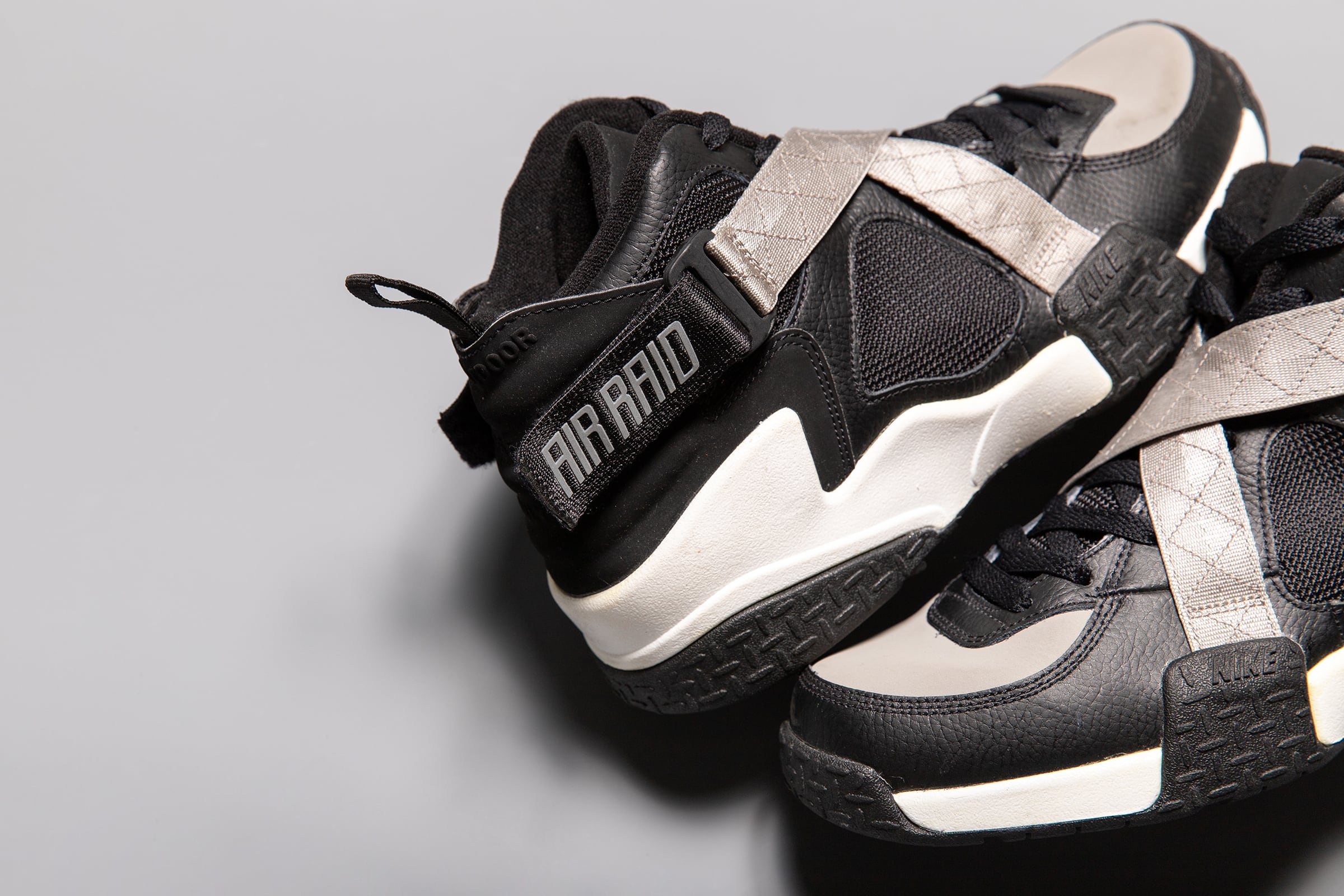 オリジナルは1992年に登場したAIR RAID。デザイナーはティンカー・ハットフィールド氏。バスケットシューズながらFOR OUTDOOR USE ONLYという文字がデザインされていることからも分かるように、アウトドアコート用の一足。プロモーションビデオにはスパイク・リー氏やティム・ハーダウェイ氏も登場し、ストリートで支持を得たモデルです。特徴的なクロスしたベルトはテーピングから着想を得てのデザインです。2020年製。使用感はありアッパー右足部分に若干の汚れはありますが状態はかなり良好。まだまだ履いていただけます。