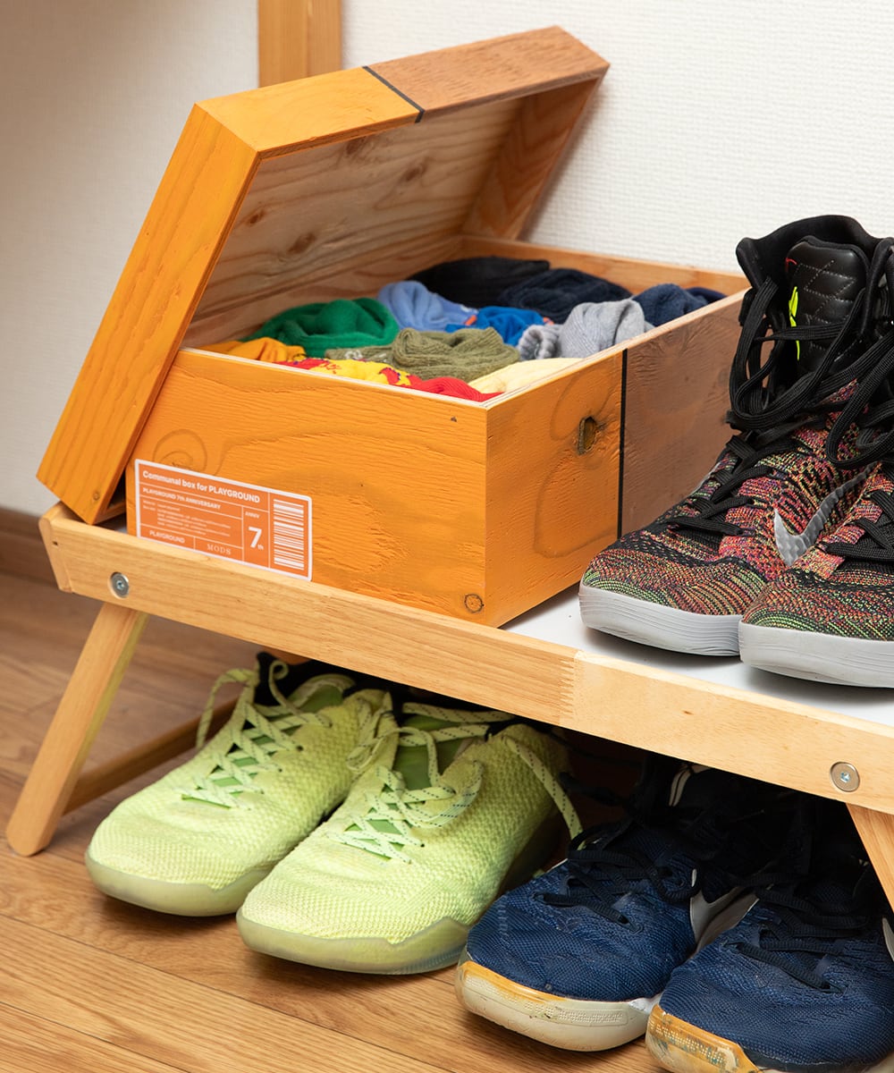 This is one of our 7th anniversary items. It is a collaboration item with MODS, a miscellaneous goods store that operates under the concept of “miscellaneous goods without a place to belong.” Named “Communal Box,” this item aims to be a box that can become a common ground for fans of both brands. We at PLAYGROUND are a sneaker shop. The image we have in mind is a shoe box. However, there are no restrictions on what you can put inside. Of course, you can put shoes, stationery, tableware, or houseplants. We want you to put whatever you want inside. And the contents will reflect your lifestyle, personality, and values. Through this collaboration, we hope you will express your own values and experience the values of someone you don't know. With that in mind, we named it the Communal Box (a box shared within a community or group).