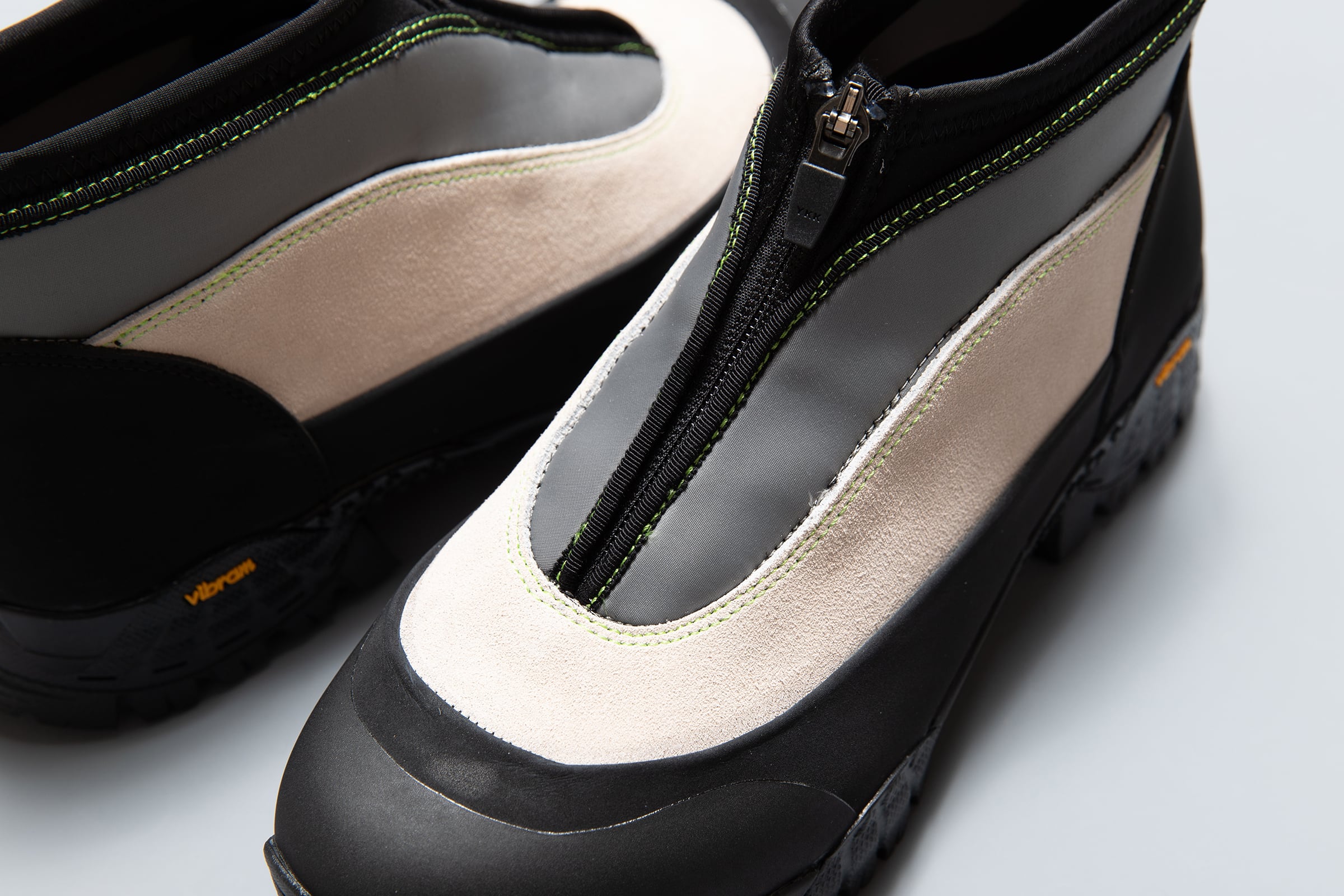 CAVEの新型の登場です。前作は使用したvibram®ソールのサイズ展開の都合上、41サイズより小さいサイズが作れませんでした。女性からのリクエストも多かったこともあり、38サイズから展開可能で、CAVEにマッチするソールを選び新しいCAVEが生まれました。このソールに変えたことにより、ボリューミーな前作よりシャープでより大人っぽいエレガントな雰囲気を醸し出しています。つま先からラバー、レザー(牛革)、ネオプレーンのレイヤーで構成されたアウターとナイロンのインナーの2層構造のシューズです。インナーにはクイックシューレースシステムを初めて採用しました。シューレースを結ぶこと無くアジャスターで簡単にホールド、リリースができます。ソールはおなじみvibram®のライトトレック用のソールを使用しています。濡れた路面でも滑らず優れた防滑性を兼ね揃えています。前作同様、街から野山までアクティブに履いて欲しいシューズです。