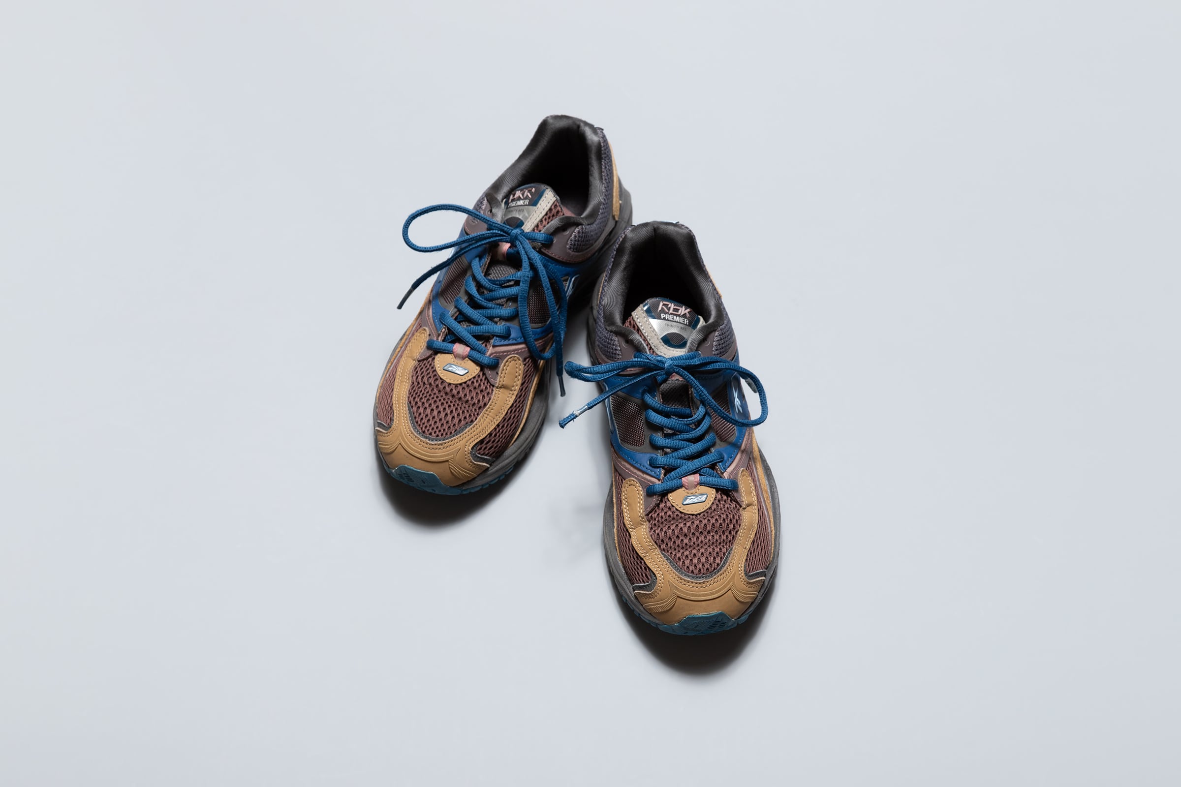 2000年代初頭に展開されていたランニングシューズであるTRINITY PREMIERをアップデートした一足。メッシュや異素材を組み合わせたかなり細かく作り込まれた一足。米ニュージャージー発の老舗スニーカーショップ「PACKER」とのコラボモデルでファッショナブルな別注。よく見るとタンやヒールのロゴがRBKからPKRに変更されていたり遊び心がちりばめられた一足。若干使用感はありますがかなり綺麗な一足です。