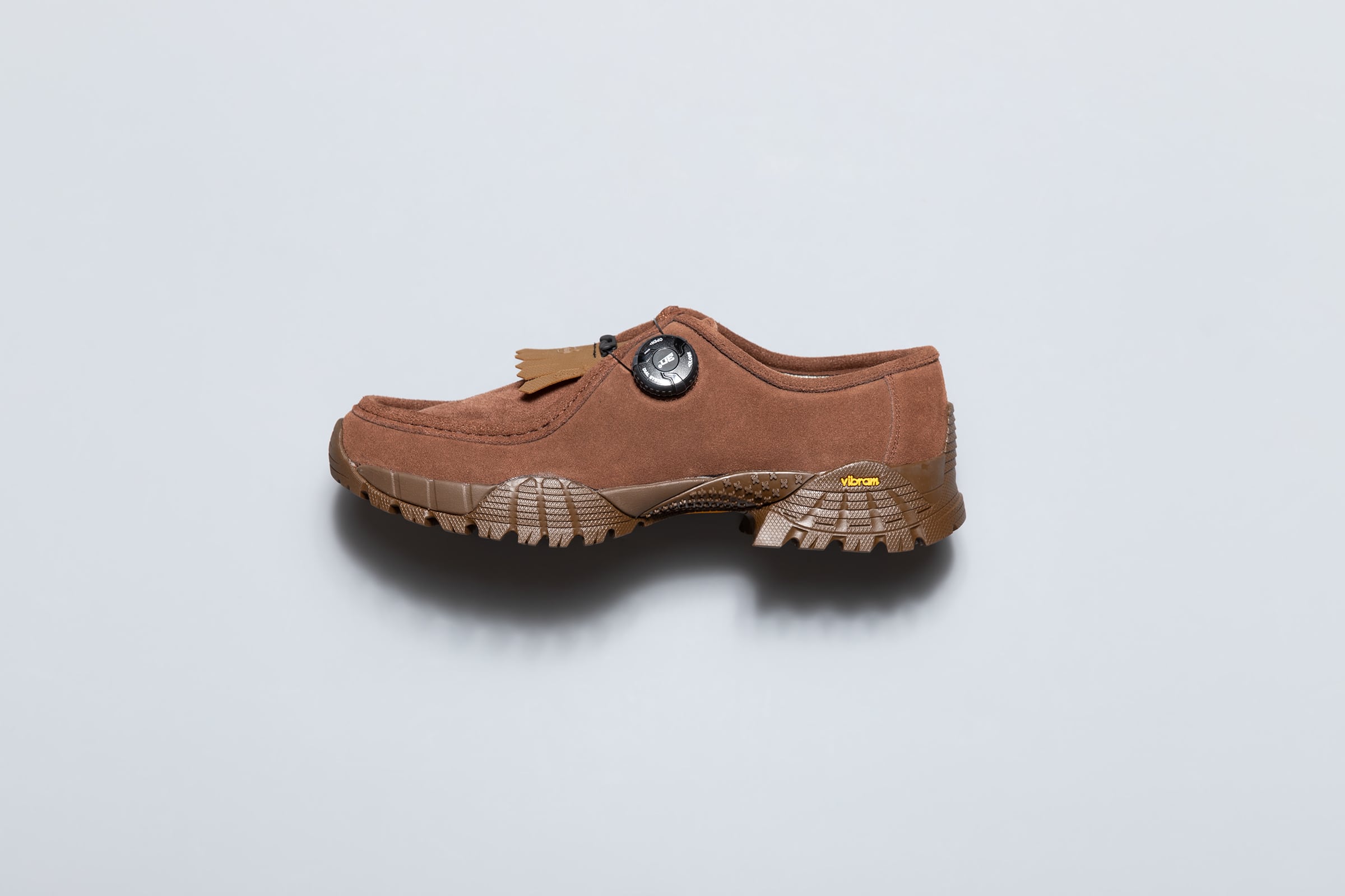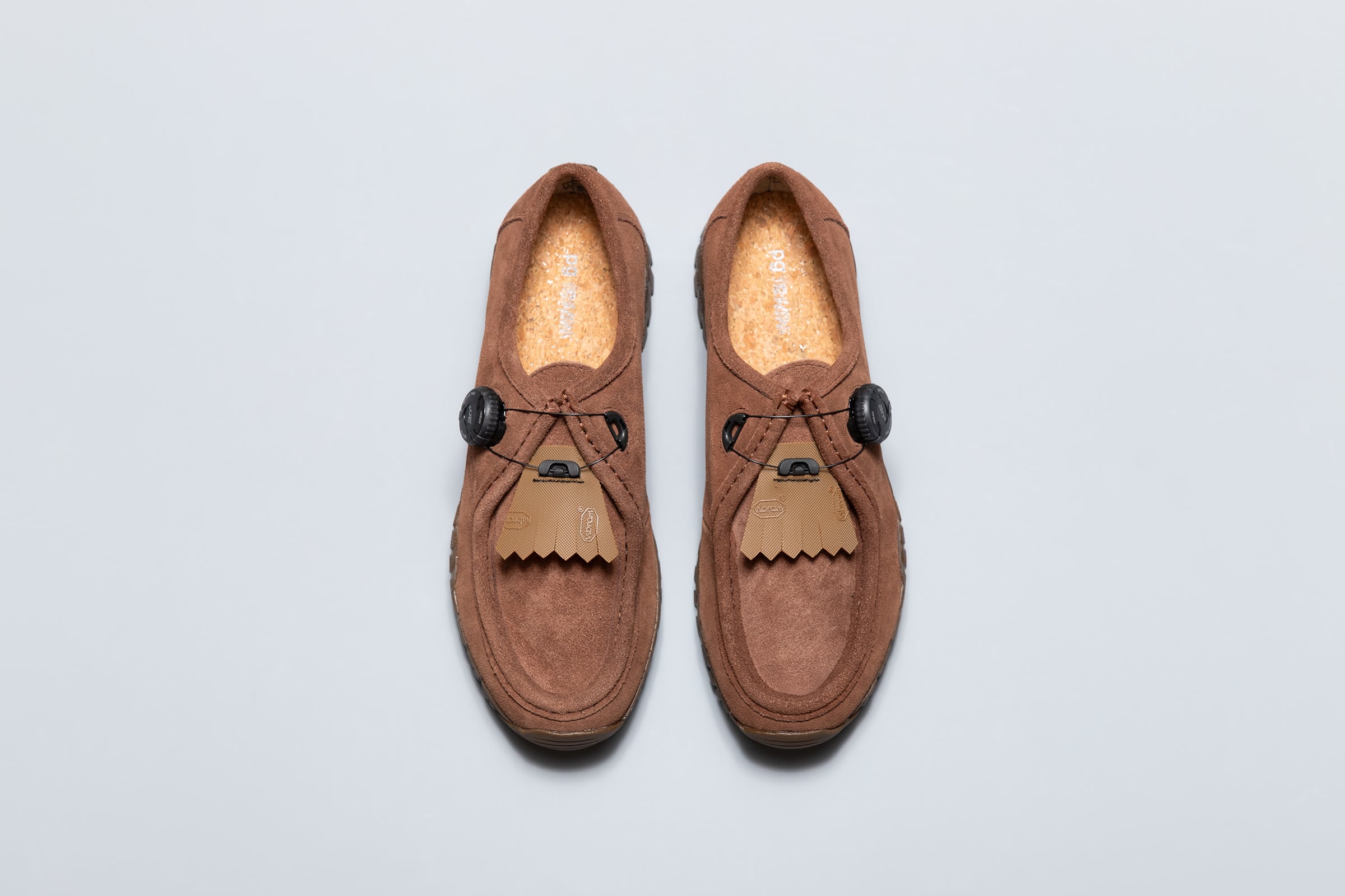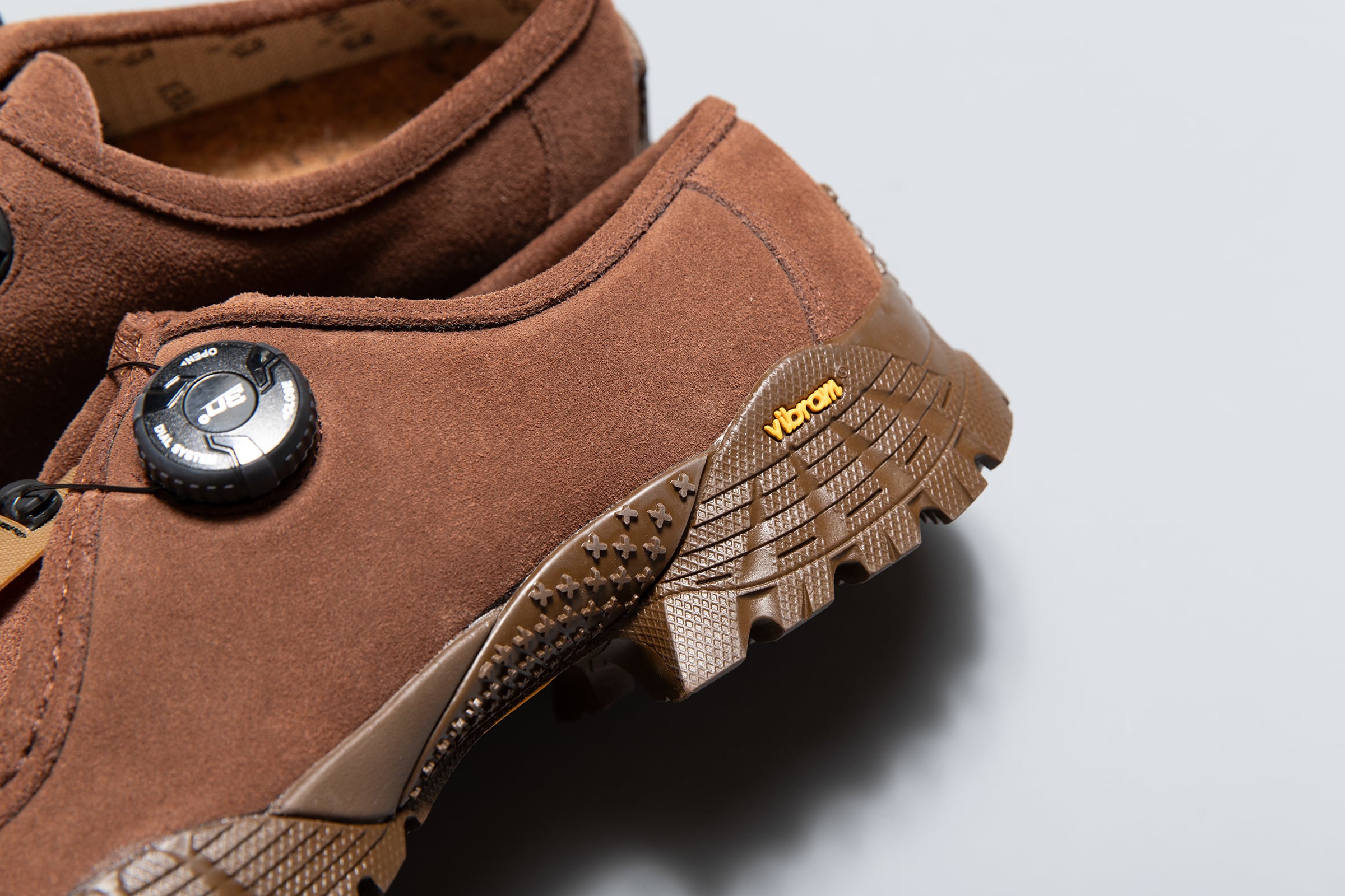 KNOCK 2のYES GOOD MARKET 2025特別仕様の登場です。アッパーからソールまで、ブラウンでまとめられた一足。また、今回のKNOCK 2には初めてvibramシートをくり抜いた、取り外し可能なキルトパーツを搭載しました。また、こちらもKNOCK 2も防水透湿のメンブレンのKING-TEXをライナーに搭載しています。防水性とシューズ内の湿気をそとに逃がす、透湿性が向上した一足です。トレイルラン用のvibram社のソールにFREELOCKシステムは健在で、クラッシックな雰囲気を持たせつつスタイリッシュでモダンなシューズに仕上げました。買いやすいプライスにもこだわった一足。