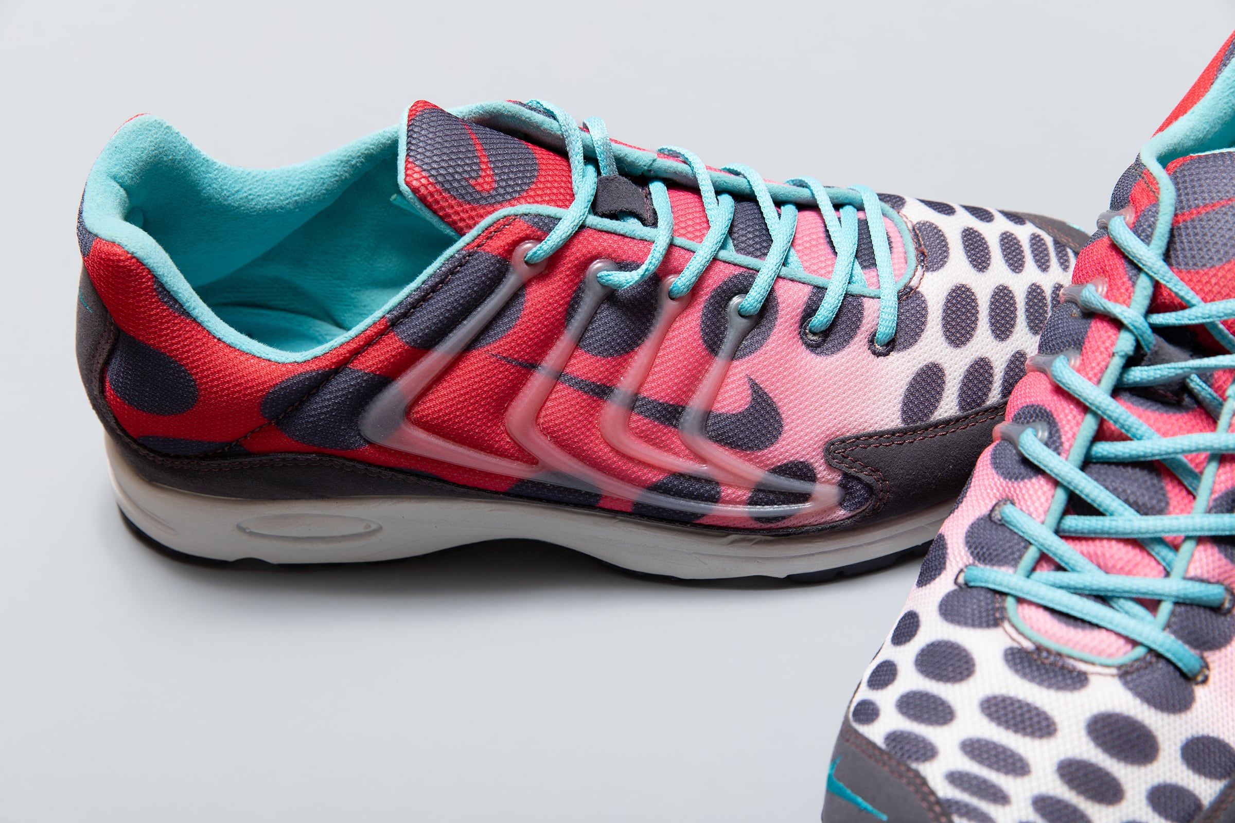 This pair features a distinctive design reminiscent of a poisonous frog. Made in 2002, it has that AIR ZOOM SEISMIC vibe. I think it's a shoe unique to Nike's period of experimentation. It's quite an eccentric pair. If you're into this style of shoe, definitely check it out. The sole has been repaired, and it comes with the box.
