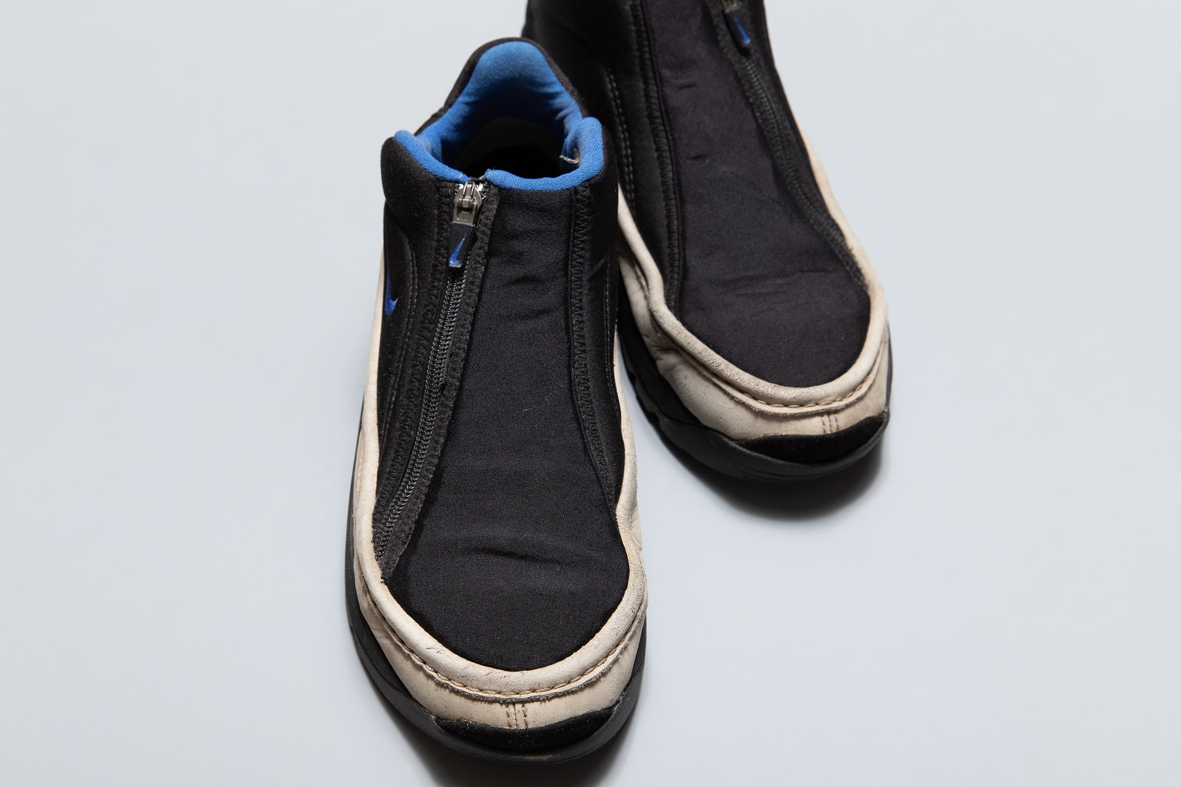 This is a rare pair of NIKE AIR CITYZONE made in 2000. Unfortunately, the midsole had hydrolyzed, so it has been custom made with a vibram sole. The design is adjusted with a diagonally placed zip. The material that makes up the upper is believed to be neoprene, which is often used in pg. The condition of the upper is relatively good considering its age. The soles have also been reupholstered, so I think this pair can still be worn. With box.