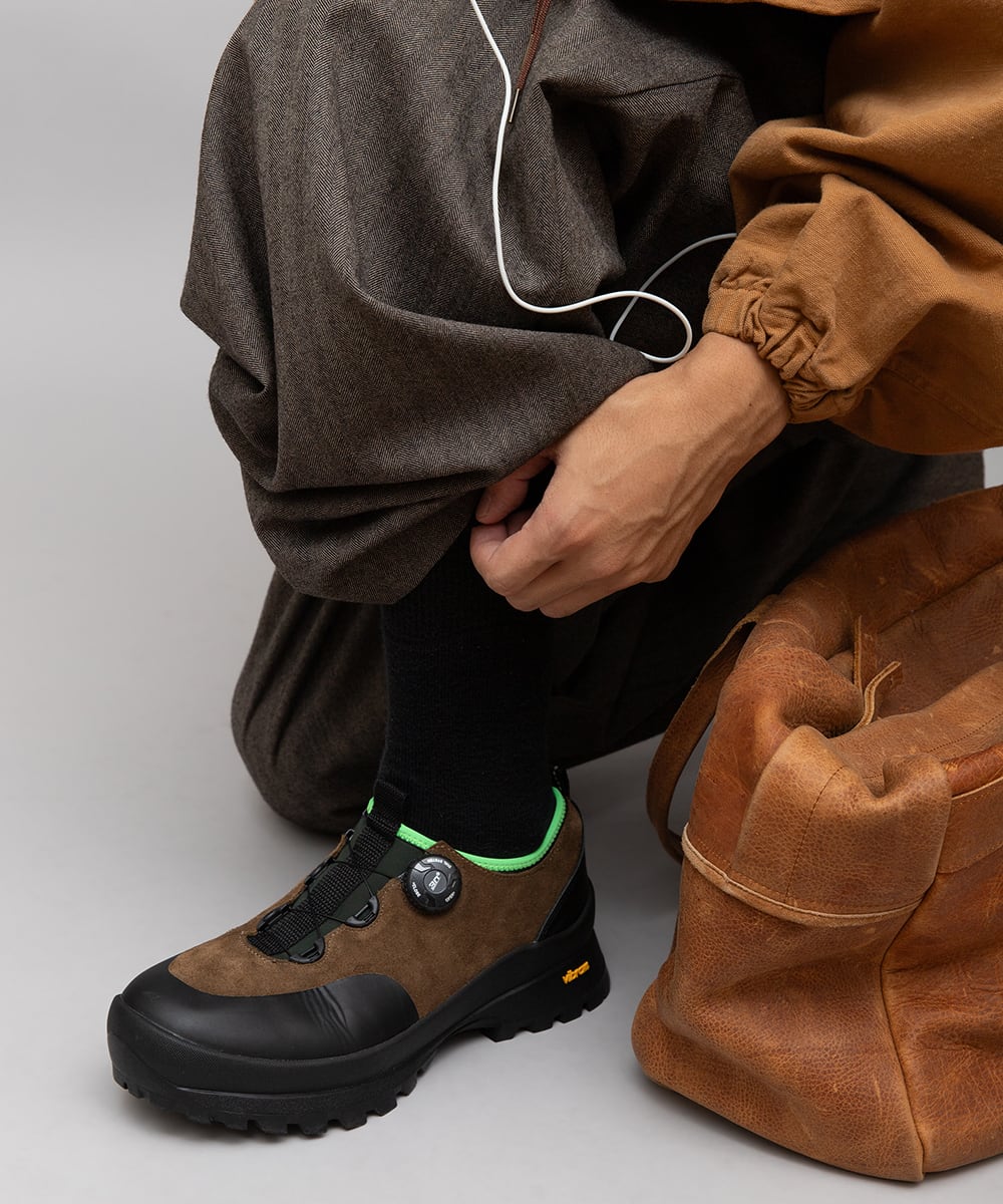 OLIVER is a model inspired by French trekking shoes that were popular among enthusiasts in the 90s. We created a daily-use trekking shoe filtered through a modern perspective and PLAYGROUND's aesthetic. It features a tough-looking Vibram sole for trekking paired with a suede upper. With a neoprene inner sock and the FREELOCK system, this shoe balances looks and practicality, all at an affordable price point.