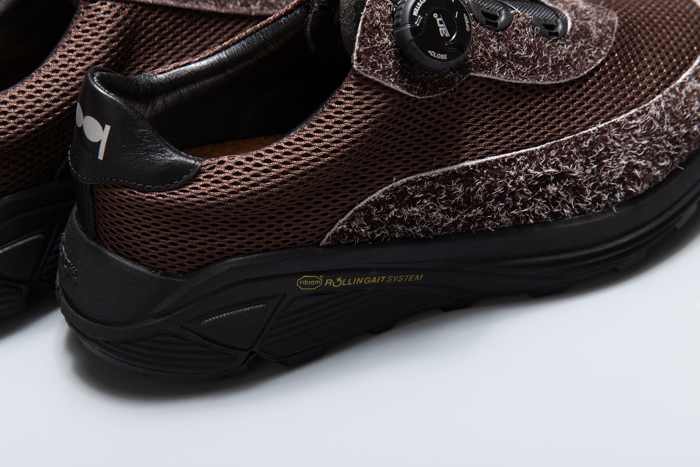2025年秋冬の第一弾のNEW DAWNの登場です。秋冬らしいダークブラウンのメッシュと毛羽立ったカウ・スエード(牛革)で構成されたPLAYGROUND限定の特別な1足です。ナイロンメッシュにスエード、vibram トレイルラン用のソールにフリーロック。これはレトロランニングスニーカー系の進化版なのか否か。THE ANSWER IS YOURS.答えはあなた次第。