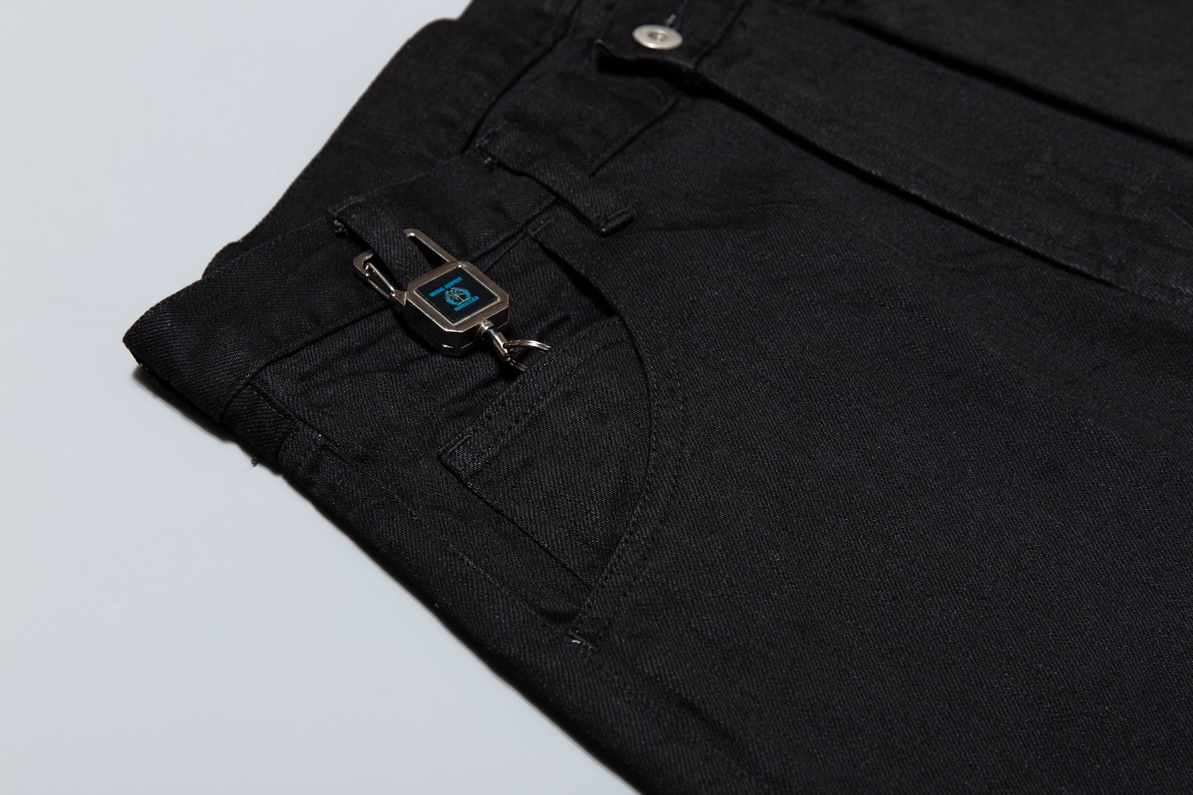 KPOCKETのKは「KEY(鍵)」を意味します。鍵をパンツのベルトループにぶら下げがちな人向けに作られたパンツです。サイドポケットを広めにし、コインポケット位置を少し下げ、その上にループを追加することで、ぶら下げた鍵をポケットに入れやすくなっています。ややテーパードのバギーシルエット。日本製。