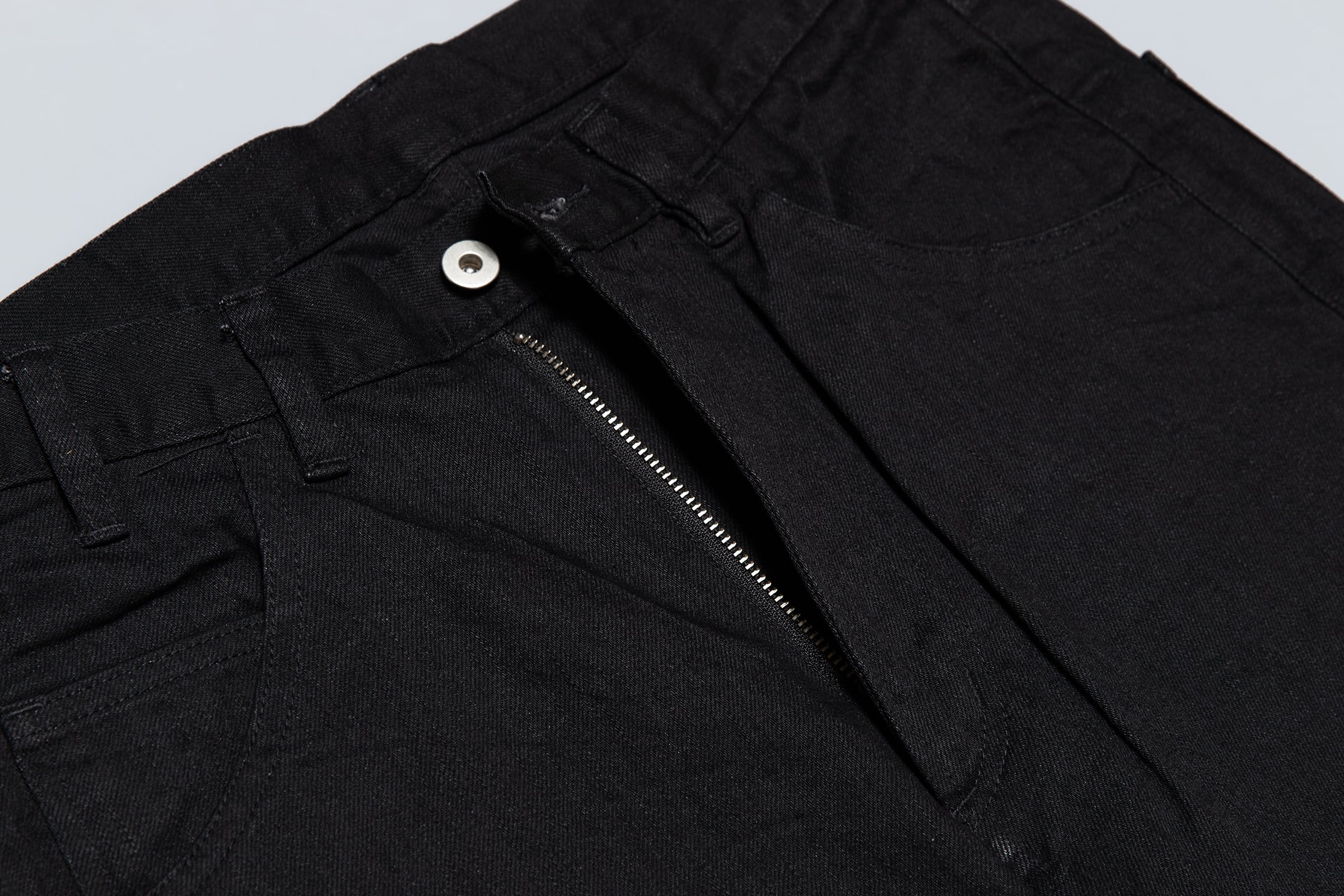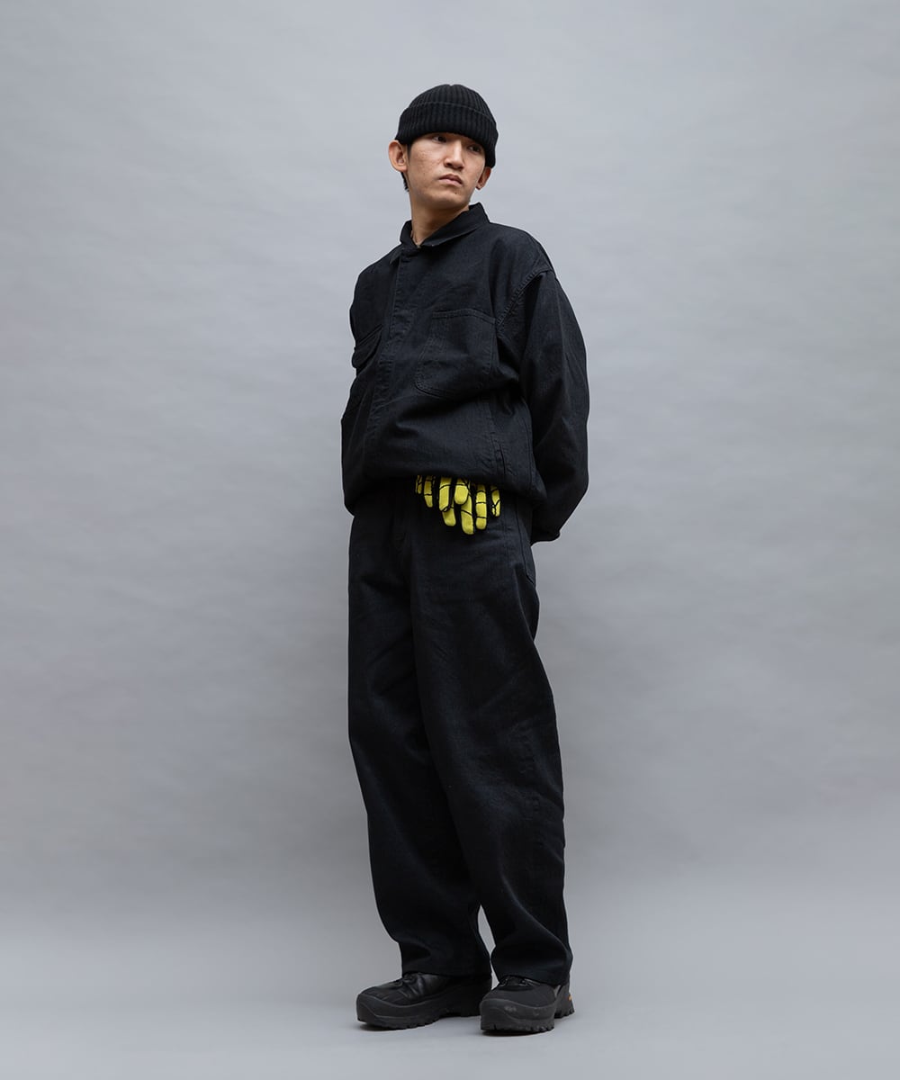 The "K" in KPOCKET stands for "KEY". I also created these pants for people, like myself, who tend to hang their keys from their pants' belt loops. These 5-pocket pants have wider side pockets, a slightly lowered coin pocket, and an added loop on top to make it easier to pocket the hanging keys. It's a new way to utilize the coin pocket. The style is a slightly tapered baggy silhouette. At first glance, it may look like a regular 5-pocket trouser, but that's the beauty of these pants. Made in Japan.