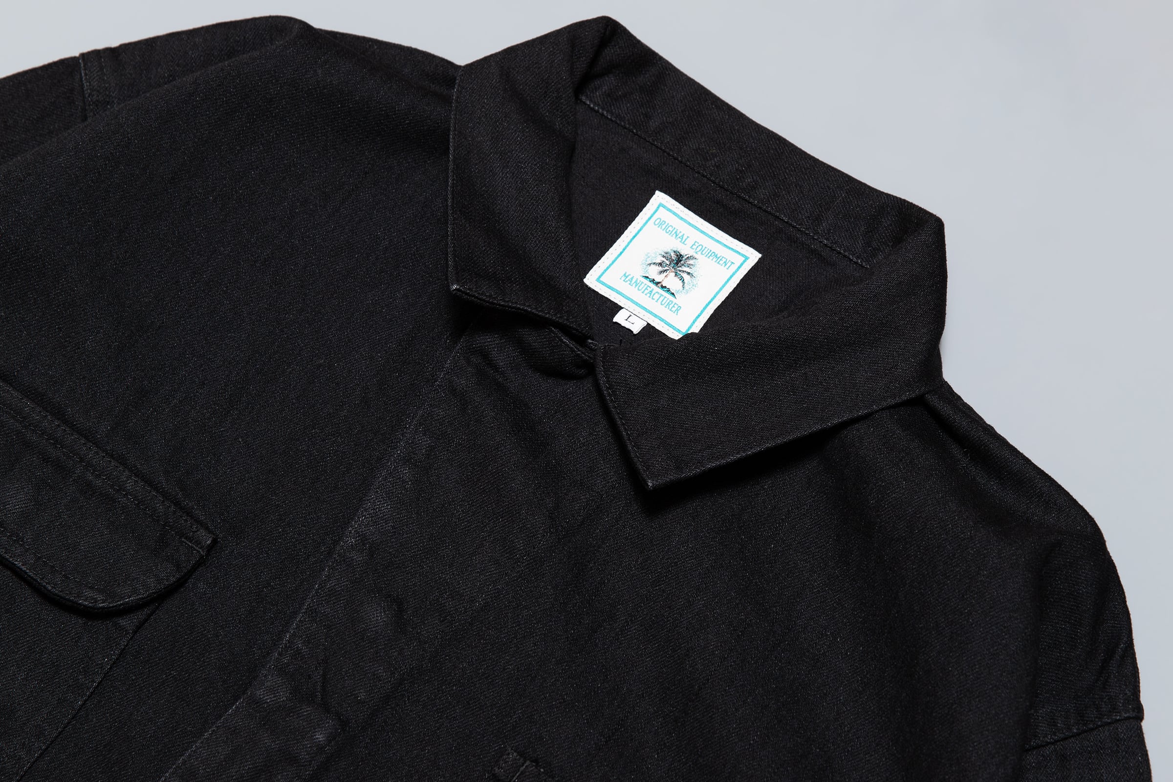 This jacket is based on 1960s American vintage overalls, with a design that looks like it has been cut from the waist down. It has a coverall-like design, but with a length similar to a denim jacket, giving it a fresh look. When paired with oem06's black KPOCKET PANTS, it becomes a set, and by tightening the drawcord at the hem, you can achieve a look similar to an all-in-one outfit. Personally, I have always admired wearing all-in-one outfits in fashion, but I feel the difficulty level is high. Additionally, concerns about how often I would wear it and the difficulty in handling it also come to mind. Therefore, I hope that those who feel the same way can occasionally enjoy the all-in-one vibe with this set. The chest pocket is designed with a modern size that can comfortably fit a smartphone. Made in Japan.