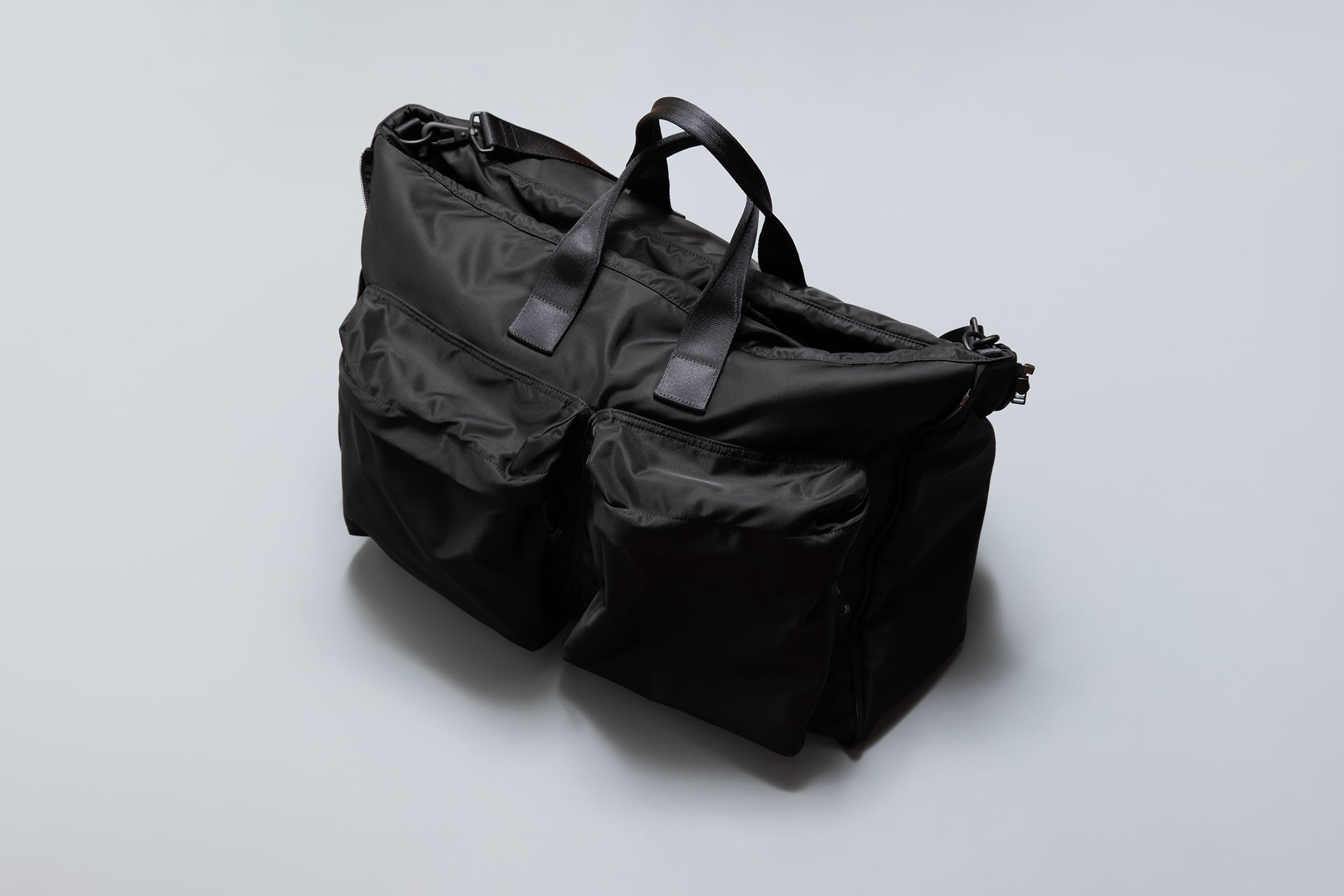 The "EX" in EX HELMET BAG encompasses two meanings. One is "EXTREME". By using premium nylon from Italy's LIMONTA, I have created the ultimate helmet bag that I could imagine. The other is "EXPAND". By opening and closing the side zippers, you can significantly change the capacity and silhouette. While preserving the essence of a helmet bag as much as possible, I have opted for a wider and elongated form, emphasizing the fit and drop when worn on the shoulder. When the zipper is closed, it takes on a briefcase-like shape, and it also features an inner pocket that can accommodate a 13-inch laptop, A4 files, and more. Therefore, it is highly recommended for use in business scenes. Made in Japan.