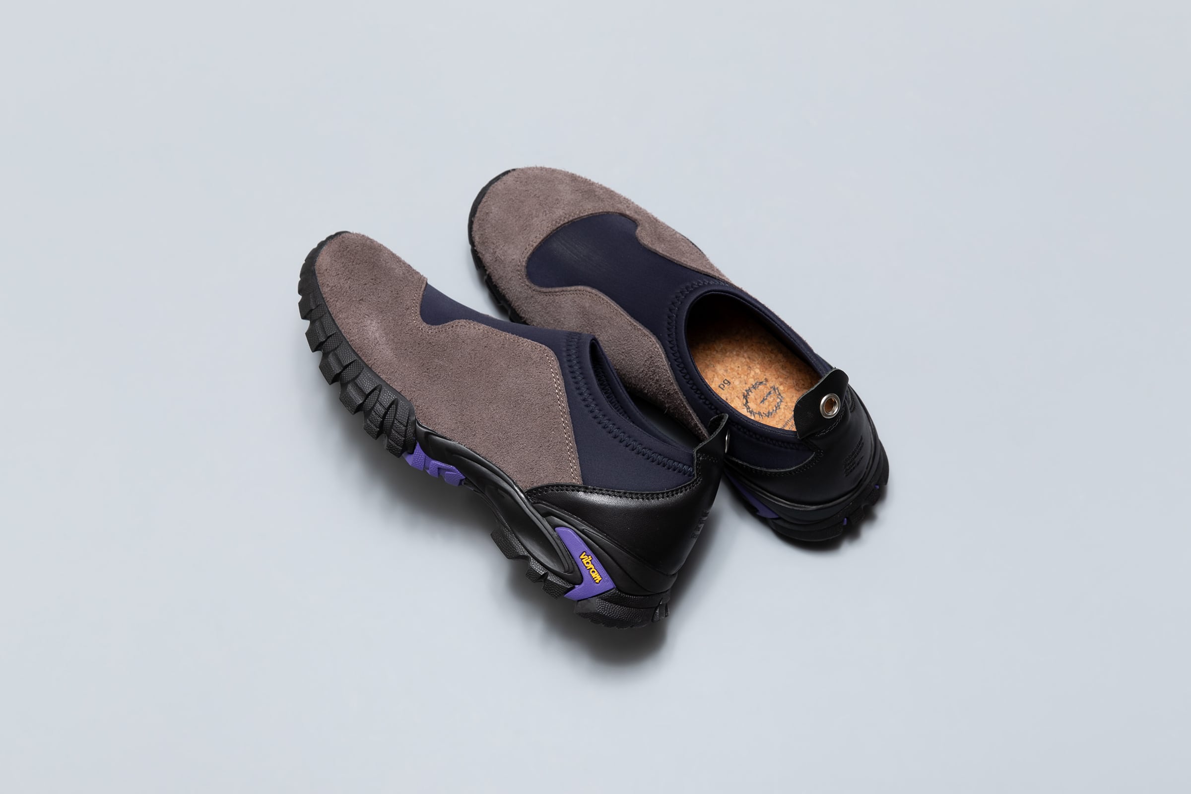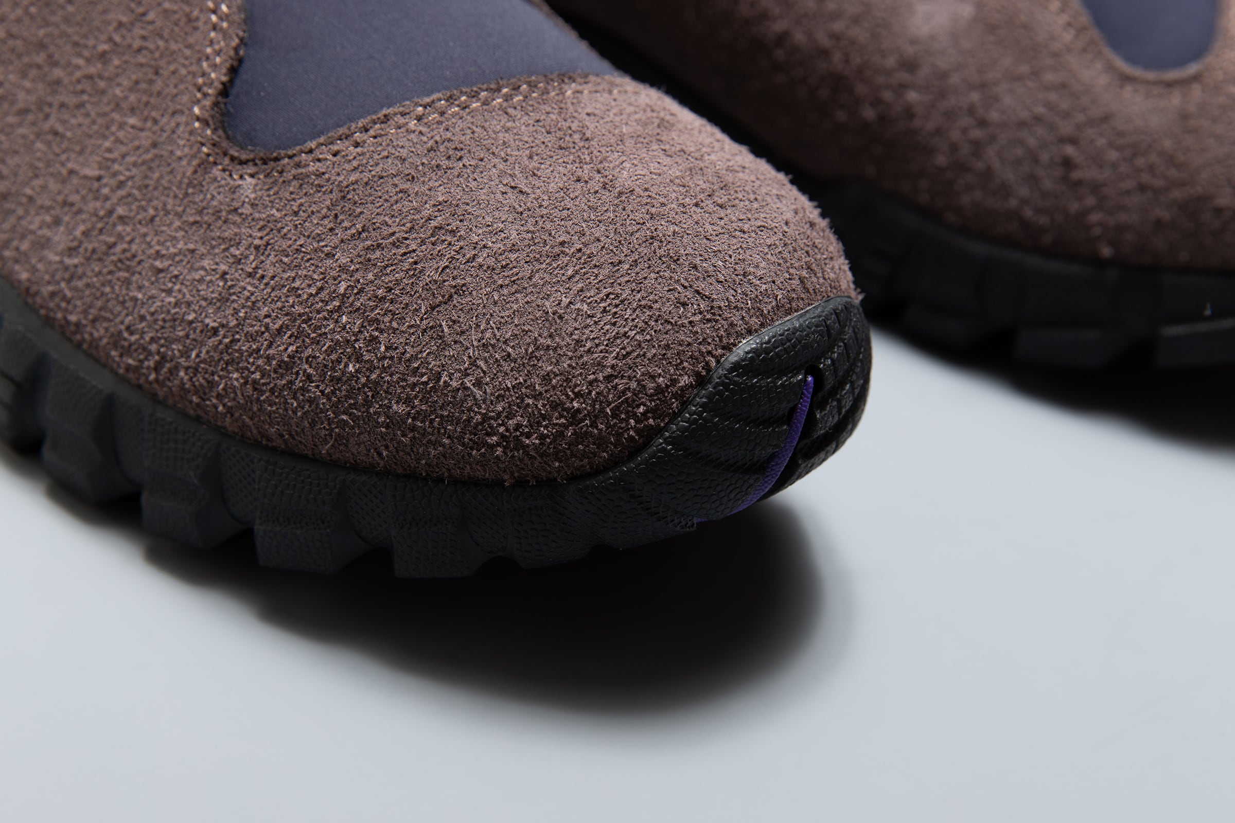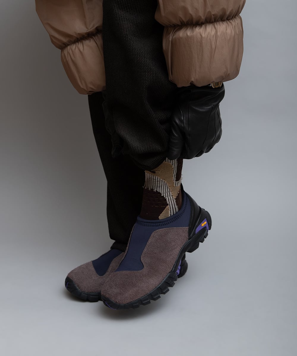 TRAIL MOC is a new moc-type shoe equipped with a vibram® sole for light trekking. It is the successor to the GARDEN MOC, which was loved by many people. Sharper than its predecessor, this is a pair that is more active in active scenes. The upper is made of three materials: shaggy suede (cowhide) with a furry surface, elastic neoprene, and smooth leather (cowhide) on the heel. We are exposed to a wide variety of sneakers, both old and new. Slip-on moc shoes with no adjustable devices attached are always appealing. The TRAIL MOC is the new moc shoe you want to wear now, fitting both in the city and in nature.