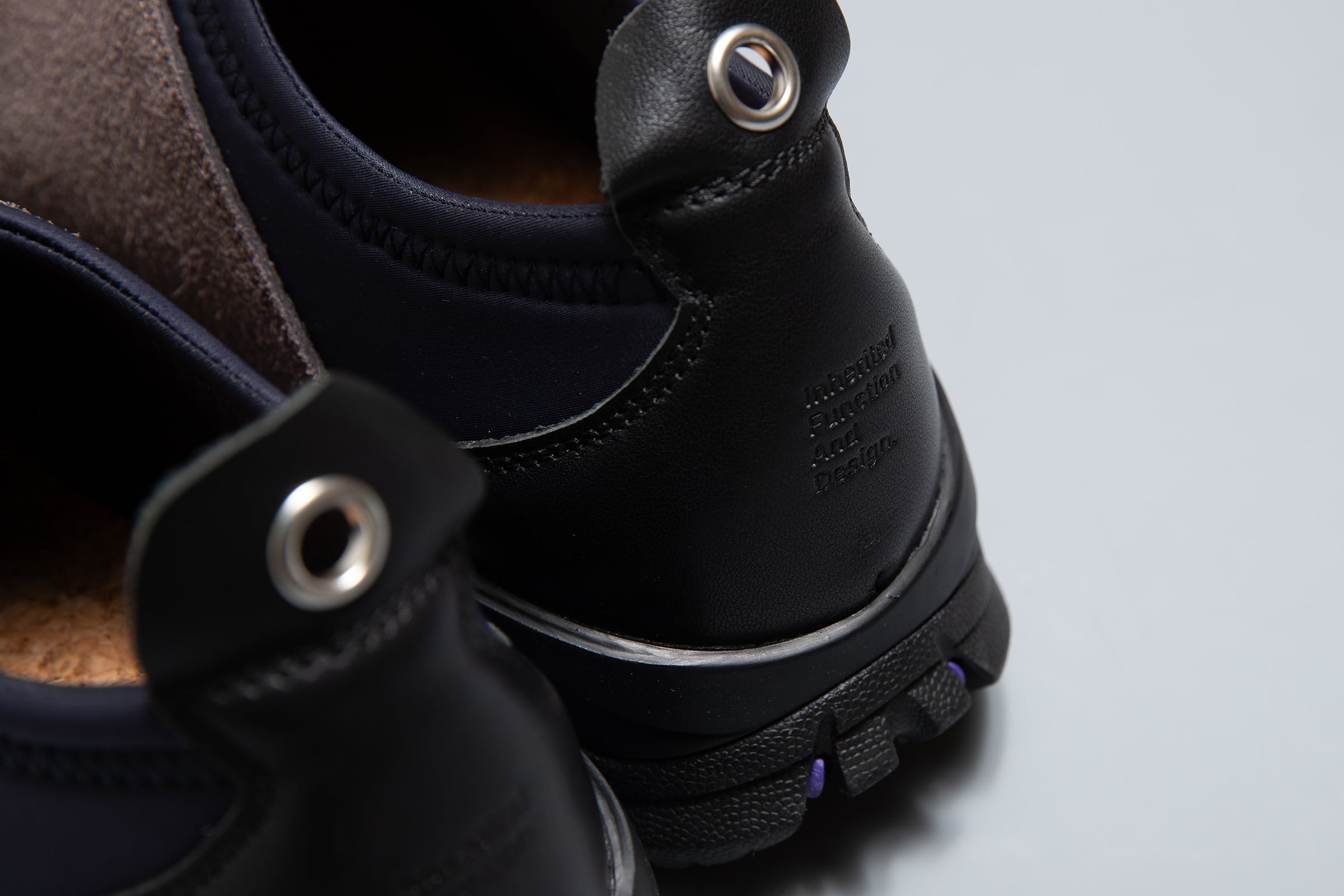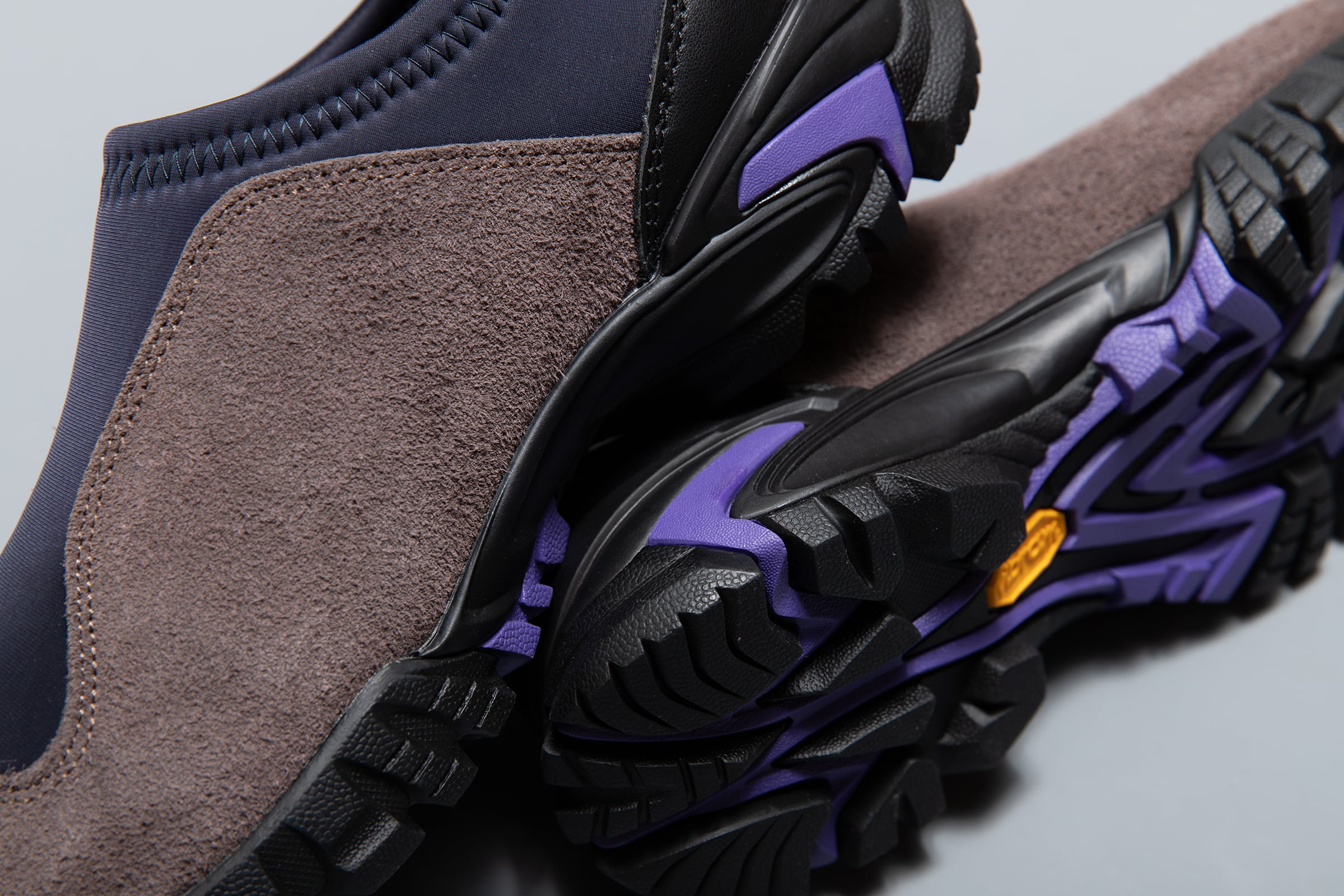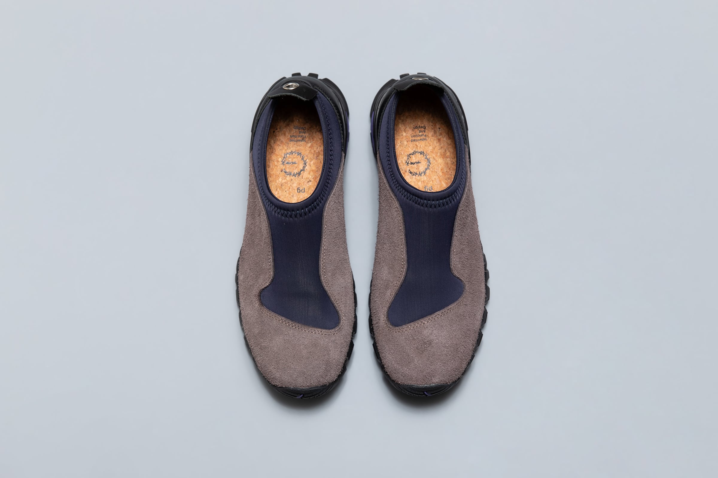 TRAIL MOC is a new moc-type shoe equipped with a vibram® sole for light trekking. It is the successor to the GARDEN MOC, which was loved by many people. Sharper than its predecessor, this is a pair that is more active in active scenes. The upper is made of three materials: shaggy suede (cowhide) with a furry surface, elastic neoprene, and smooth leather (cowhide) on the heel. We are exposed to a wide variety of sneakers, both old and new. Slip-on moc shoes with no adjustable devices attached are always appealing. The TRAIL MOC is the new moc shoe you want to wear now, fitting both in the city and in nature.
