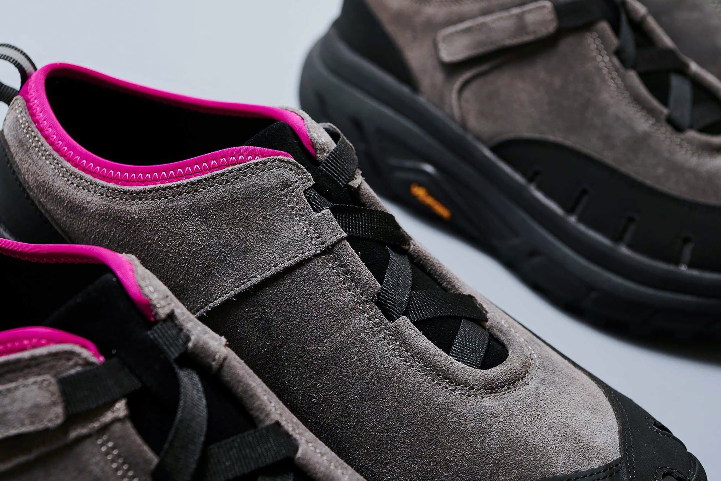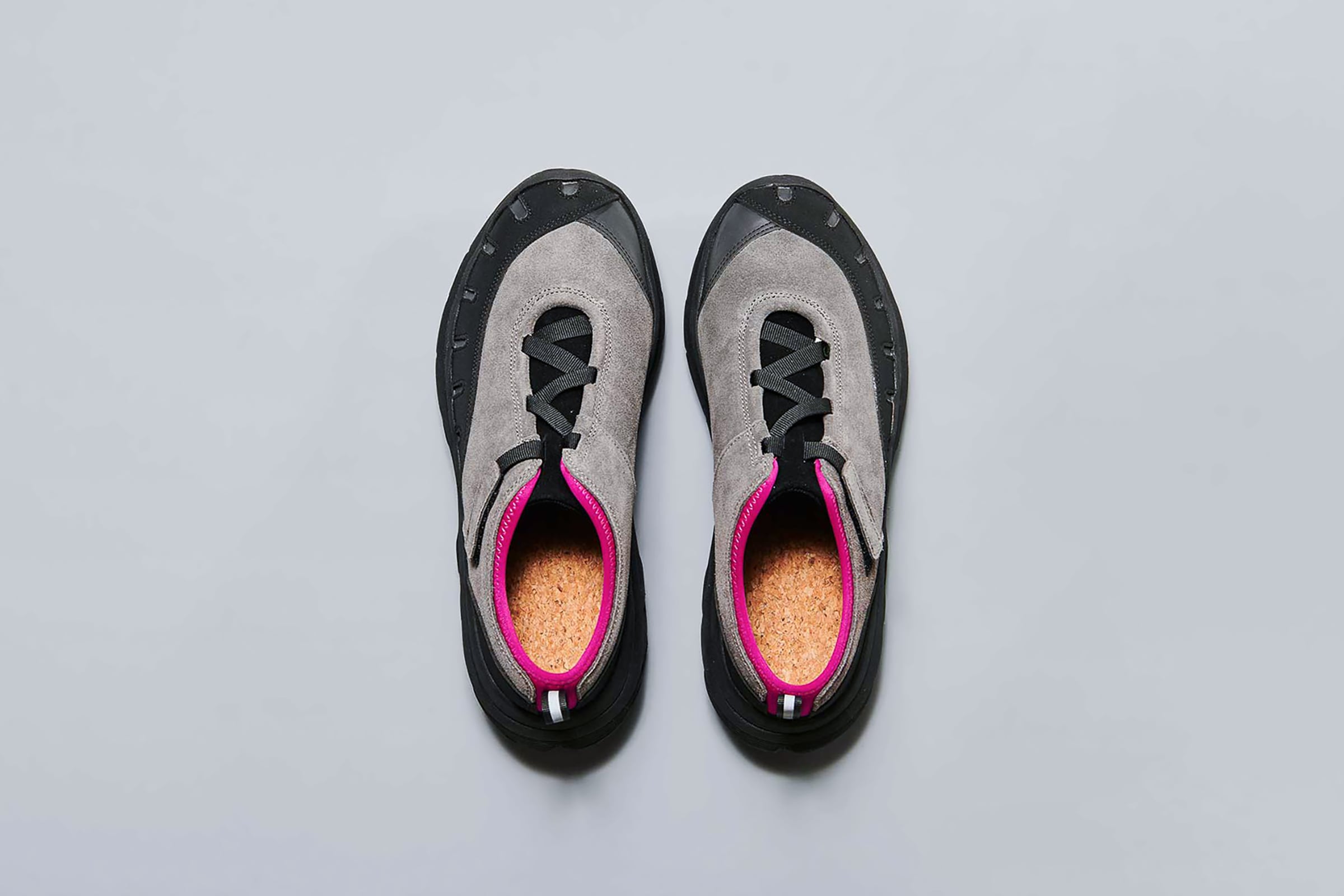 pg LADYBUGです。シューレースではなく、10mm幅のテープでアジャストできる仕様です。こちらも紐が解けて結び直す、煩わしさを解消するアジャストシステムです。ソールはvibram®のボリュームあるトレイルラン用のソールです。底あたりも柔らかく、推進力が働くソールを使用してます。トゥガードのパーツが、外側だけ2重になっています。内側(下側)がリフレクターパーツを使用し外側(上側)の7つのホールよりリフレクターが機能して反射する仕様です。丸みがある愛嬌のあるフォルムと、7つのホールが光ることで7星になぞらえ、ナナホシテントウ「LADYBUG」と名付けました。