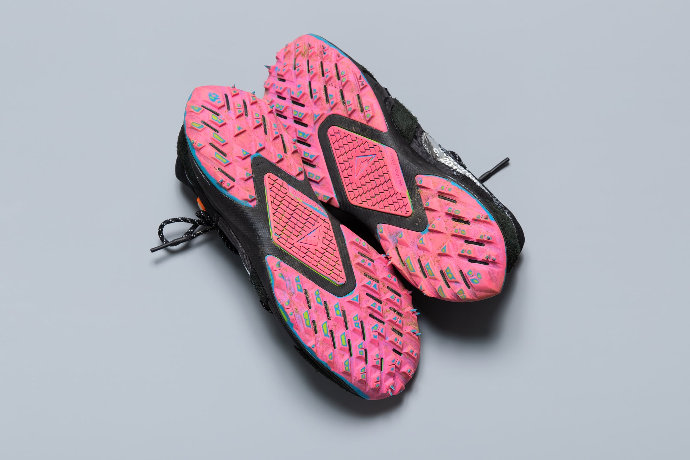 This is a collaborative shoe between NIKE and Off-White. The ZOOM TERRA KIGER 5 is said to be based on a trail running shoe. It's a model we recommend today, amidst the expanding fitness culture encompassing running and the current downturn in sneaker momentum. Amidst an information overload and the rise of affordable fashion and influencer brands, we propose this Off-White collaboration shoe designed by Virgil Abloh—the pioneer of luxury streetwear who led the fashion industry. It's not trendy. It doesn't carry a premium resale price. Its recognition is relatively low. Precisely because it's such a model, you need to make the effort to choose it yourself. That's the kind of model it is. As it's a women's design, the sizing runs slightly small. Recommended for those around US size 10.5 (28.5cm). Made in 2019. It shows some wear, and the sole is slightly worn down, but I believe it can still be worn comfortably.