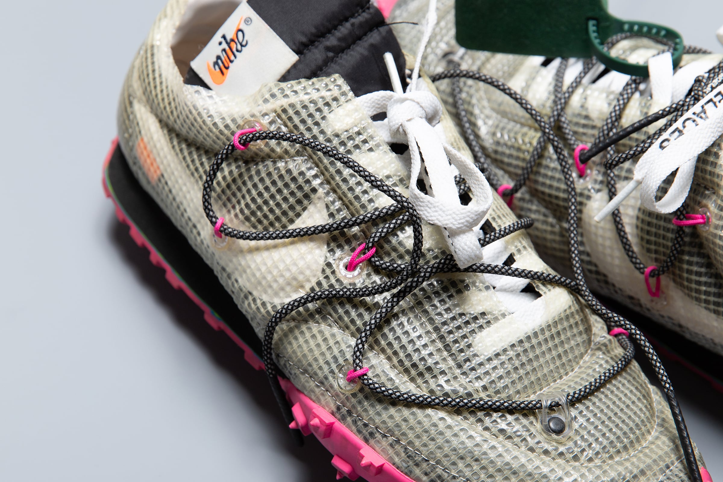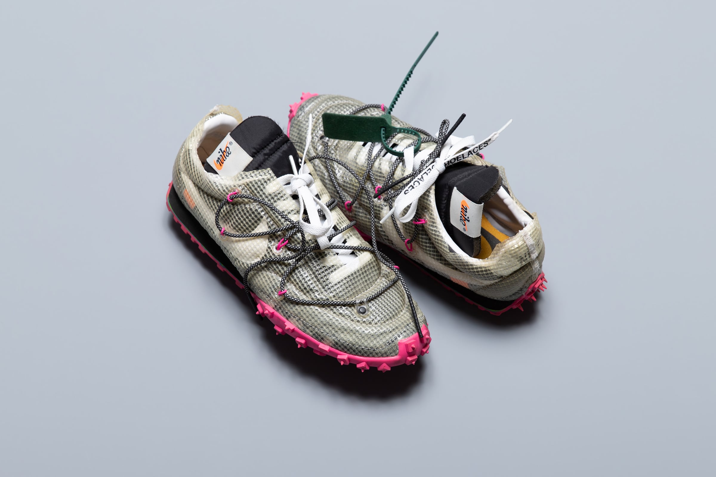 This is a collaborative shoe between NIKE and Off-White. The NIKE WAFFLE RACER SP is based on the iconic shoe worn by Bill Bowerman, a track athlete whose legacy is essential to the story. In today's landscape where fitness culture like running is expanding yet sneaker momentum is waning, this is the model we recommend. Amidst an information overload and the rise of affordable fashion and influencer brands, we propose this Off-White collaboration shoe designed by Virgil Abloh—the pioneer of luxury streetwear who led the fashion industry. It's not trendy. It doesn't carry a premium resale price. Its recognition is relatively low. Precisely because it's such a model, you need to make the effort to choose it yourself. That's the kind of model it is. As it's a women's design, the sizing runs slightly small. Recommended for those around US size 9 (27cm). Made in 2019. There is some wear, and the sole is slightly worn down, but I believe it can still be worn comfortably. Includes ZIP TIE.