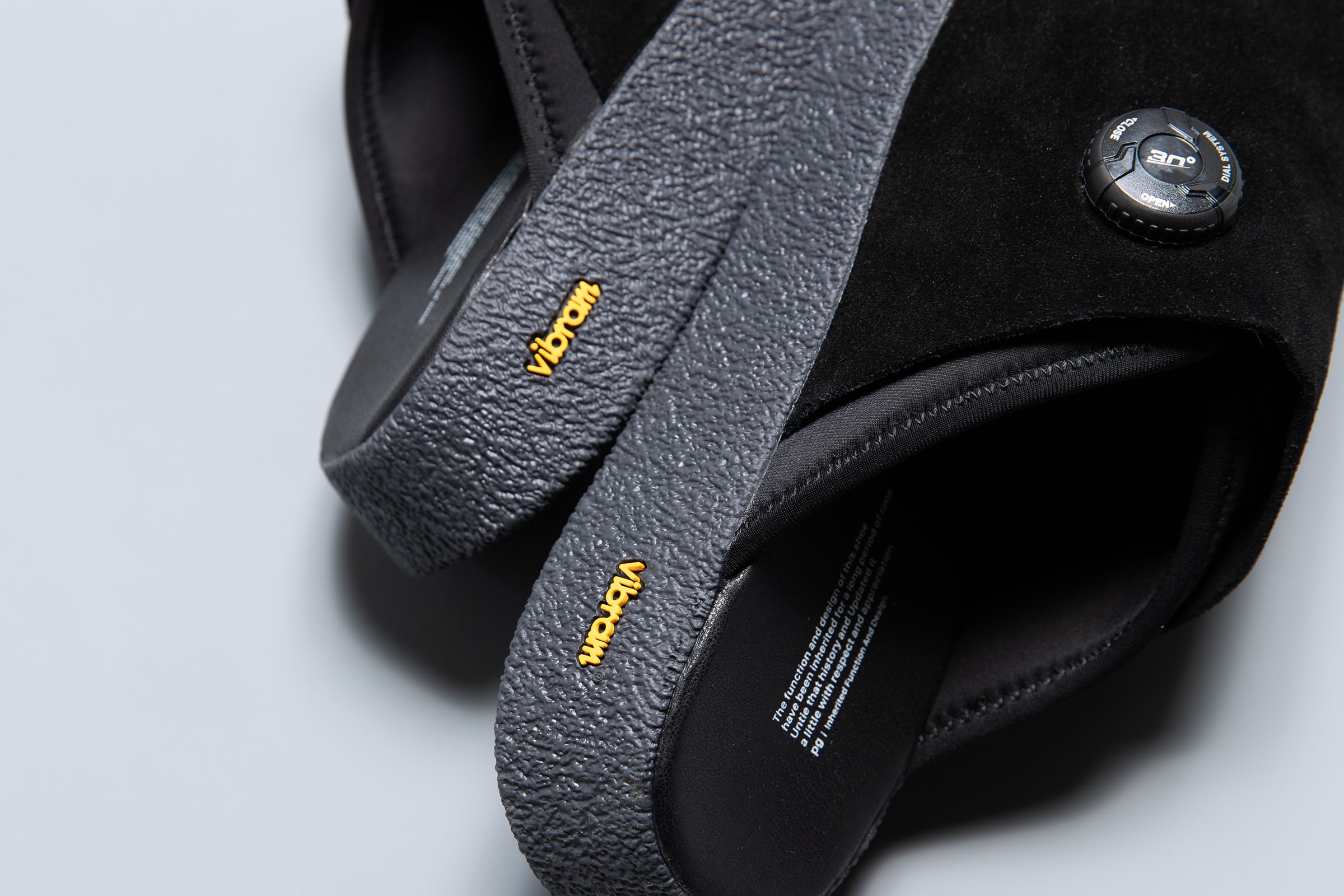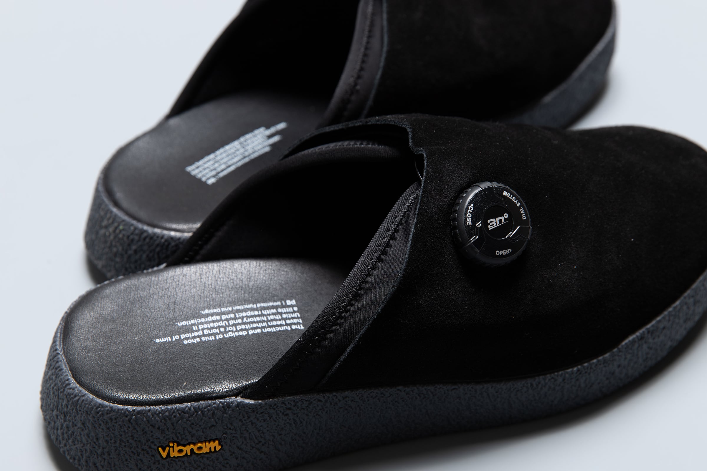 アジャストできるサボタイプのサンダルです。2重構造になっています。外側、アウターはカウ・スエード(牛革)で内側、インナーはネオプレーンで構成されています。FREELOCKシステムを使用しており、ダイヤルを回すとインナーが締り目的、用途に合わせてアジャストできます。アクティブに動く時は、ホールドして動きやすく、長時間の移動などで座って休んでいる時は緩めてリラックスできる機能的なサンダルです。ソールはvibram®のクレープソールテイストのソールを使用しています。このソールを使うことによりオーセンティックな雰囲気を醸し出しています。機能的でありながら、どこかトラディッショナルな一面も併せ持つ、次世代のサンダルがこのEMPTYです。