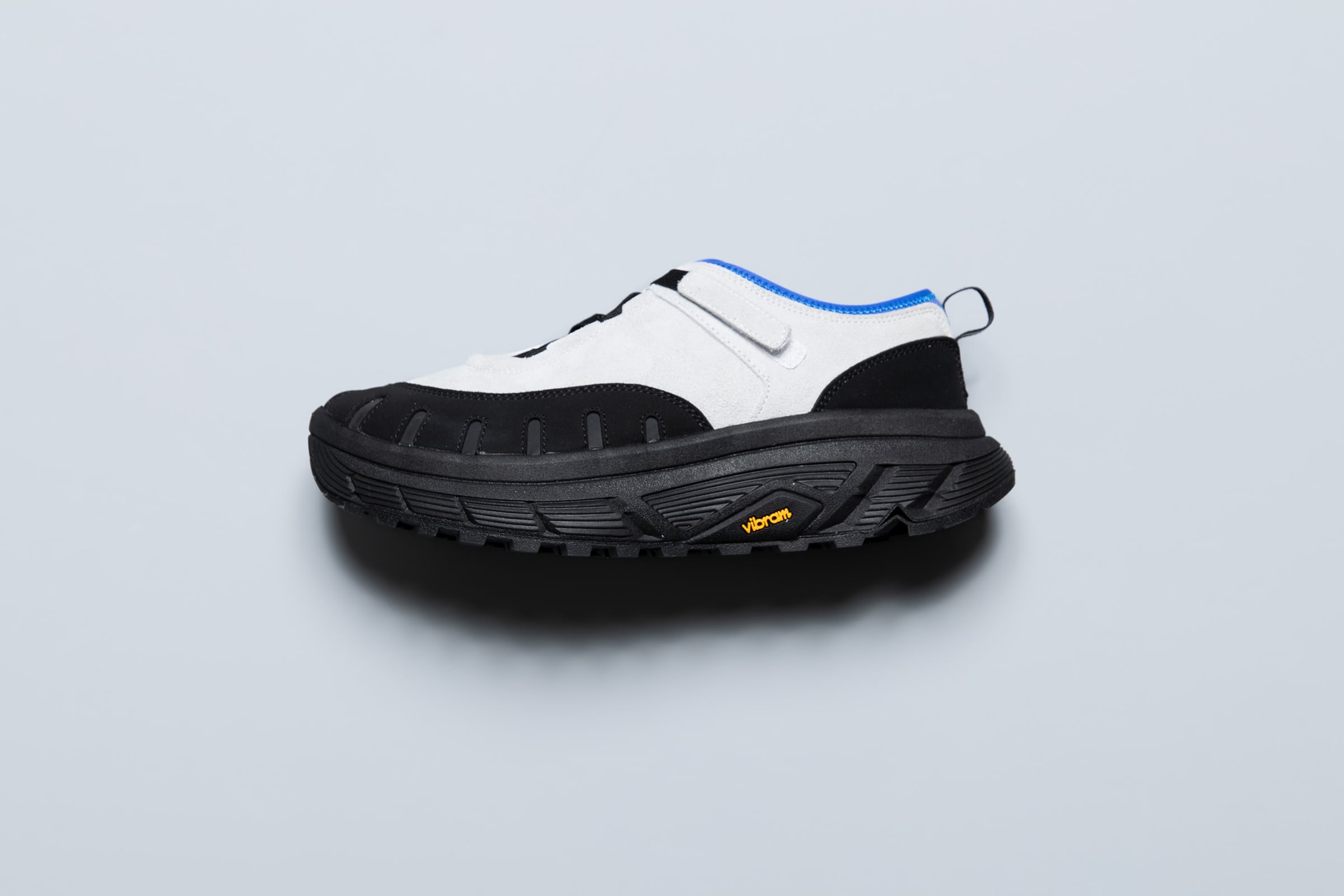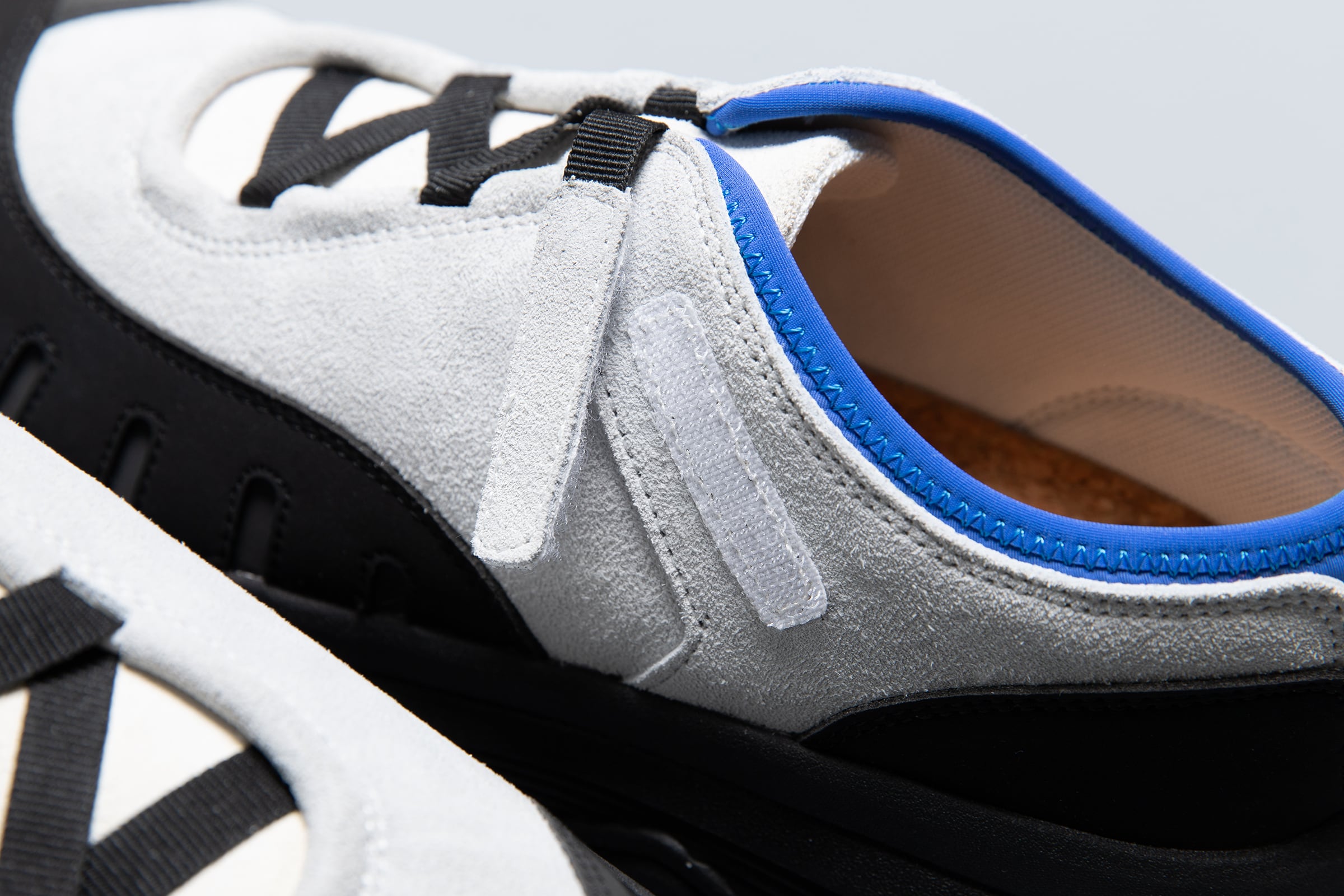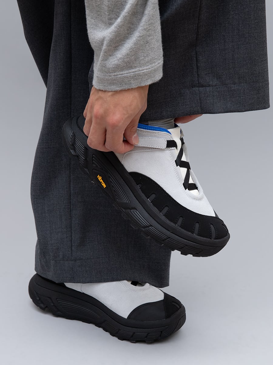 pg LADYBUGです。シューレースではなく、10mm幅のテープでアジャストできる仕様です。こちらも紐が解けて結び直す、煩わしさを解消するアジャストシステムです。ソールはvibram®のボリュームあるトレイルラン用のソールです。底あたりも柔らかく、推進力が働くソールを使用してます。トゥガードのパーツが、外側だけ2重になっています。内側(下側)がリフレクターパーツを使用し外側(上側)の7つのホールよりリフレクターが機能して反射する仕様です。丸みがある愛嬌のあるフォルムと、7つのホールが光ることで7星になぞらえ、ナナホシテントウ「LADYBUG」と名付けました。