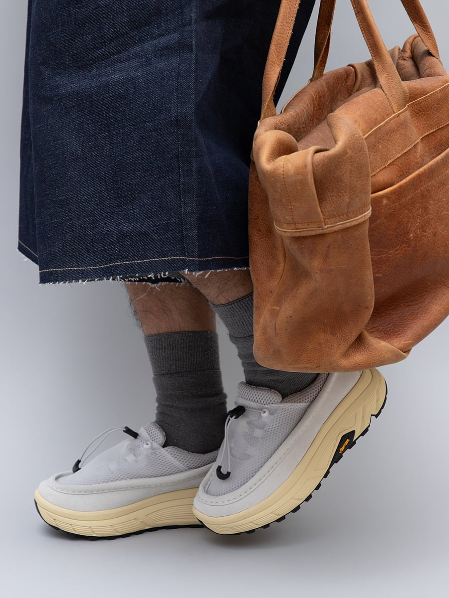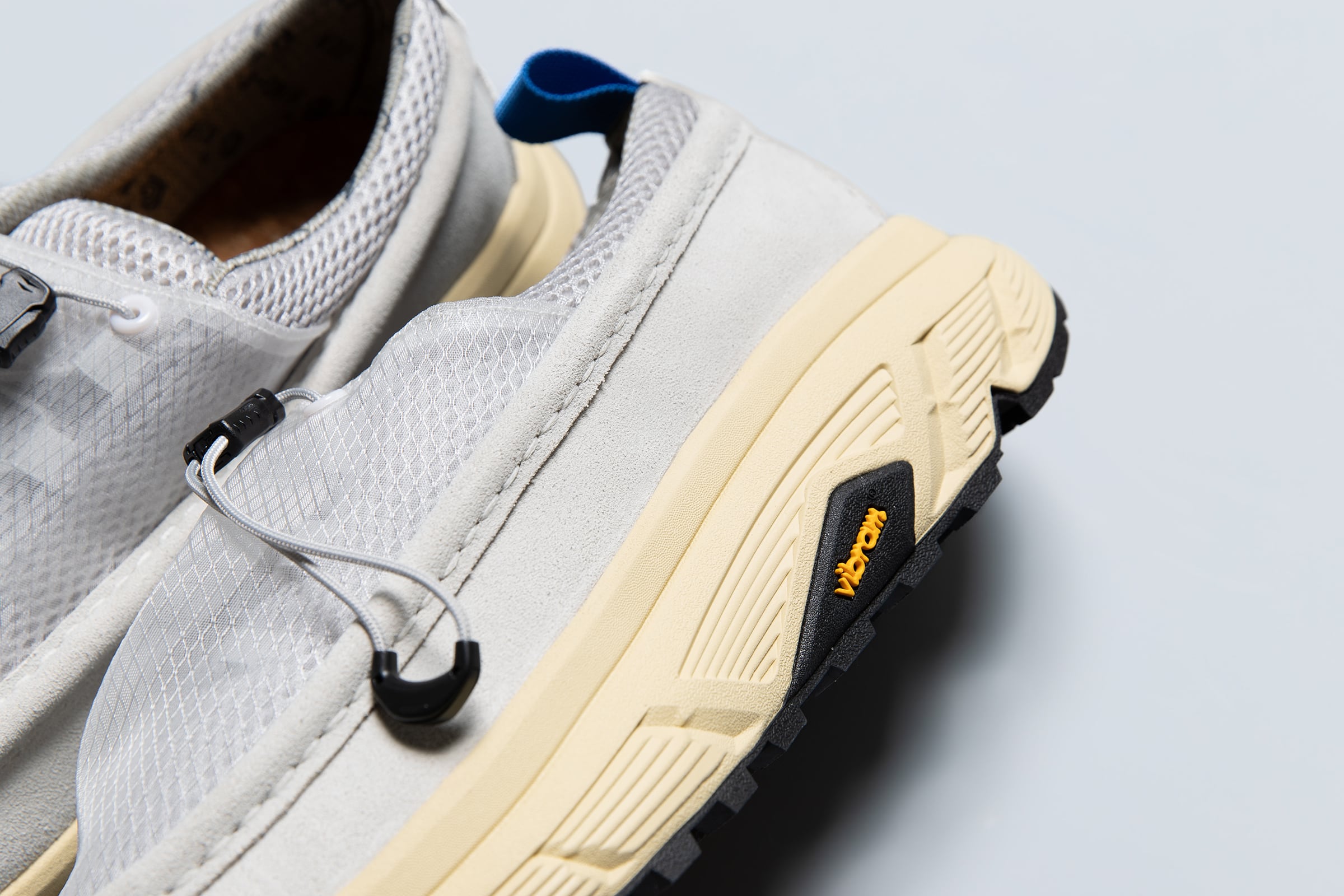 This LOSTRIVER was born from the image of the iconic mock-toe work boot from a historic brand celebrating its 120th anniversary. It features a U-shaped mock toe with a mesh shroud covering the laces and tongue. This design prevents sand and small stones from entering while walking, while also offering a unique aesthetic. It's connected to the quick lace system, allowing adjustment using the laces extending from the shroud. The substantial Vibram® Light Trek sole handles rough terrain. Equipped with waterproof and breathable KINGTEX, it delivers excellent waterproof performance.