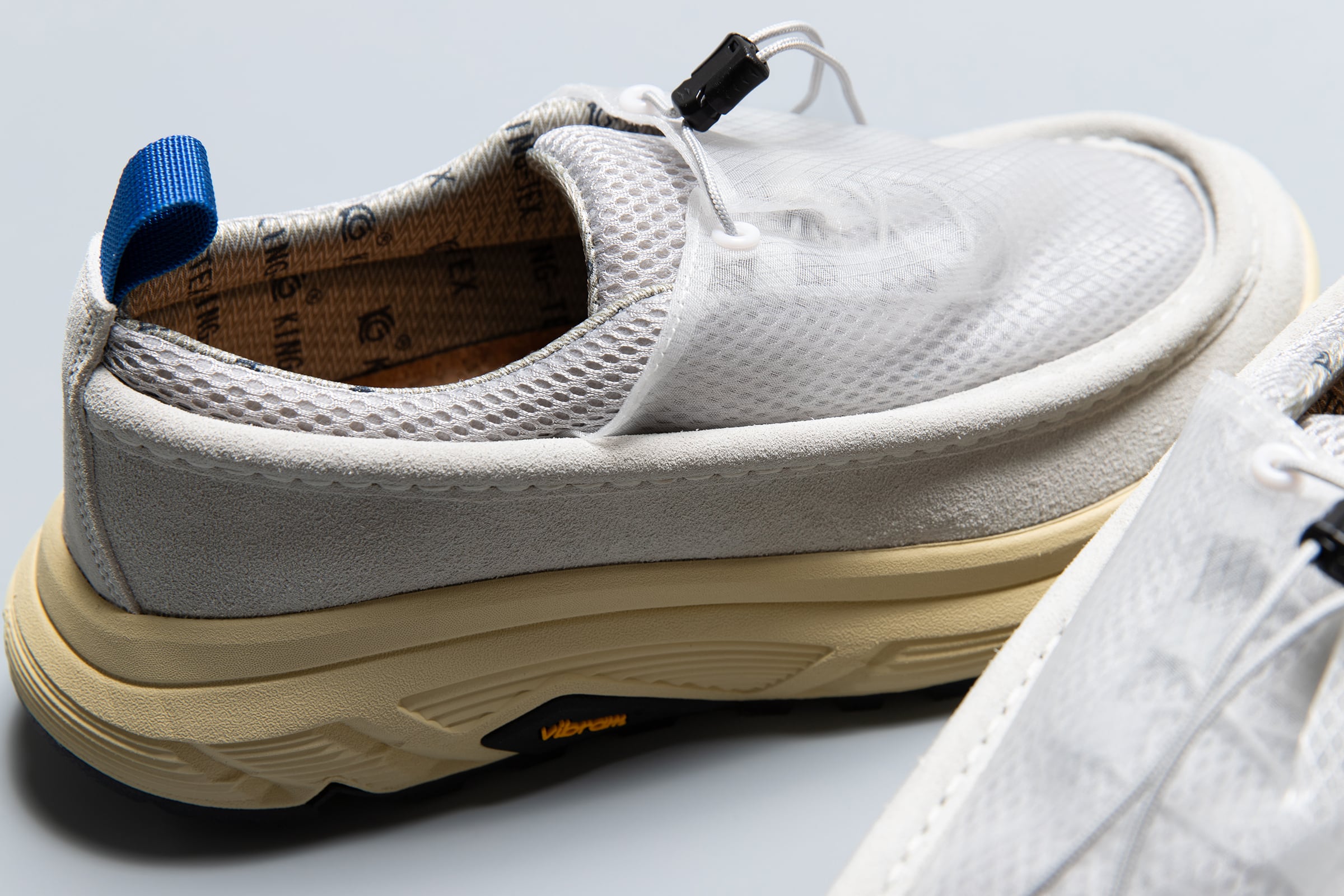 120周年を迎えた歴史あるブランドのワークブーツの代表格であるモックトゥのブーツをイメージして生まれたのがこのLOSTRIVERです。U字のモックトゥにシューレースとシュータンを覆うメッシュのシュラウドを装備しました。それにより、歩行時に砂や小石などの侵入を防ぐと同時に独特なデザイン性を兼ね揃えます。クイックシューレースシステムと連結しているので、シュラウドから出ているレースでアジャストできます。ボリュームあるvibram®のライトトレック用のソールが悪路にも対応します。防水透湿性のあるKINGTEXを装備しているので防水性にも優れた1足です。