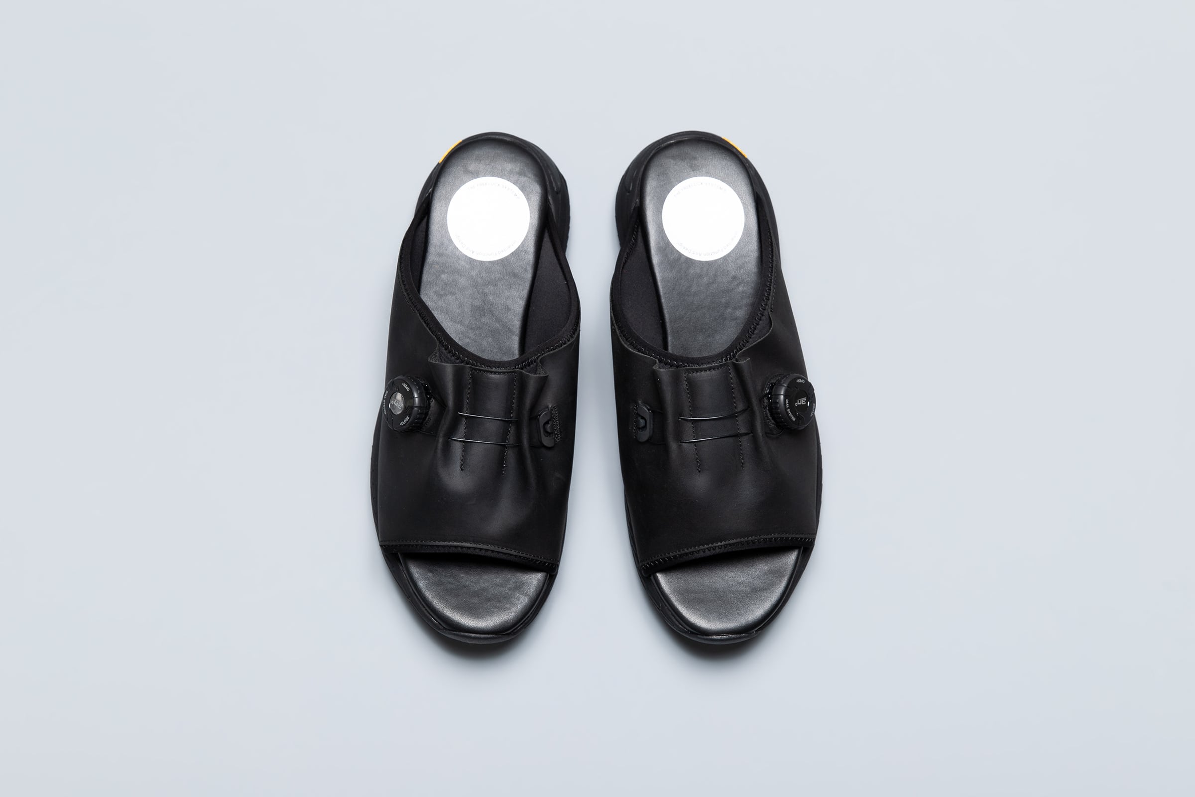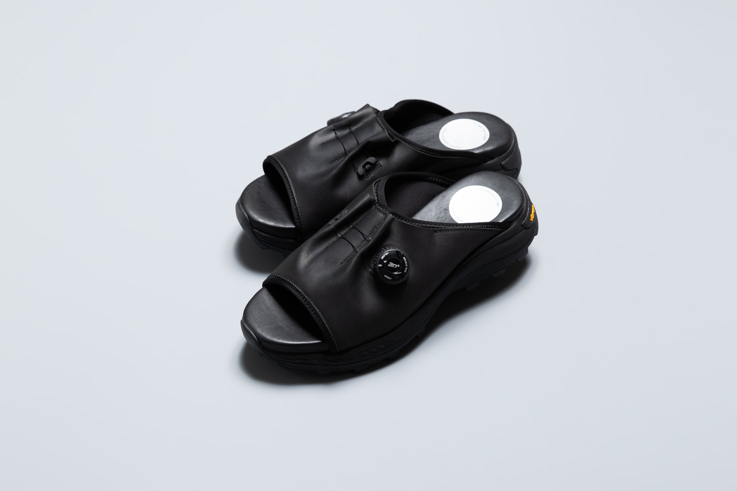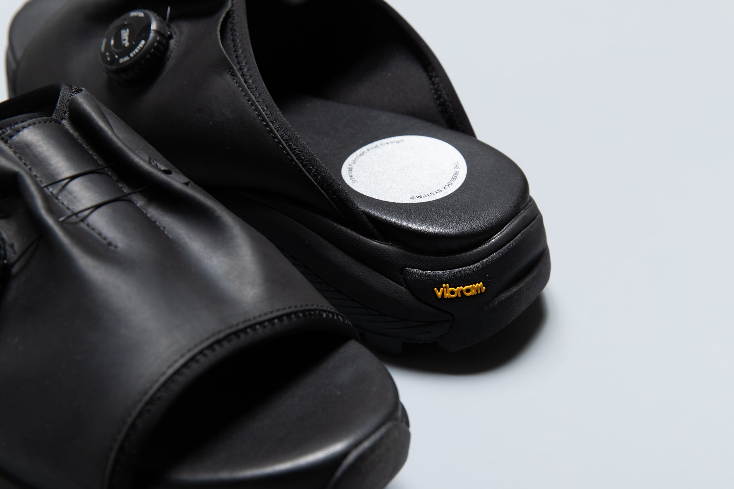 Introducing the new MOMENT. Featuring a design familiar to pg sandal enthusiasts, this sandal has a two-layer upper. The inner layer that comes into contact with the foot is made of soft, stretchy neoprene, designed to minimize blisters. The outer layer is made of cow leather, featuring darts that allow for adjustment via the FREELOCK system. By tightening the sandals to fit your foot, wrinkles form in the darted areas, creating a unique look that is characteristic of this model. The footbed incorporates high-impact-absorbing EVA, while the surface is made of synthetic leather with antibacterial and odor-resistant properties. The sole is a Vibram® model designed for light trekking and features a function called “Traction Lug.” The finely textured sole increases the contact area by up to 50% when weight is applied, providing a firm grip on the ground. Although it is a sandal, this functional sole increases forward propulsion by 25% compared to conventional soles. We are proud to have created a sandal that excels in both functionality and design.