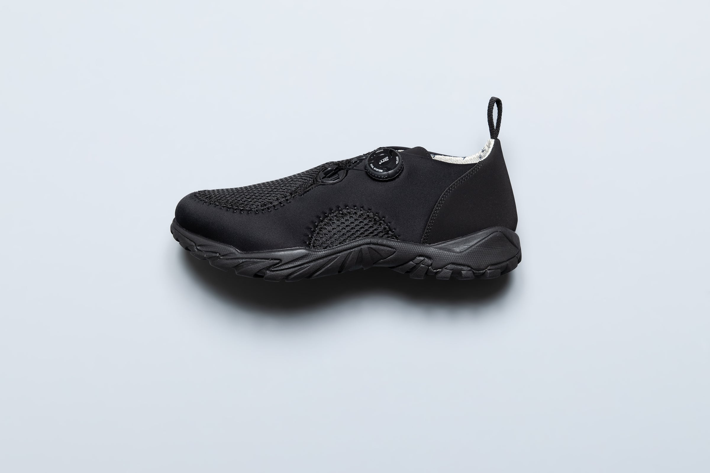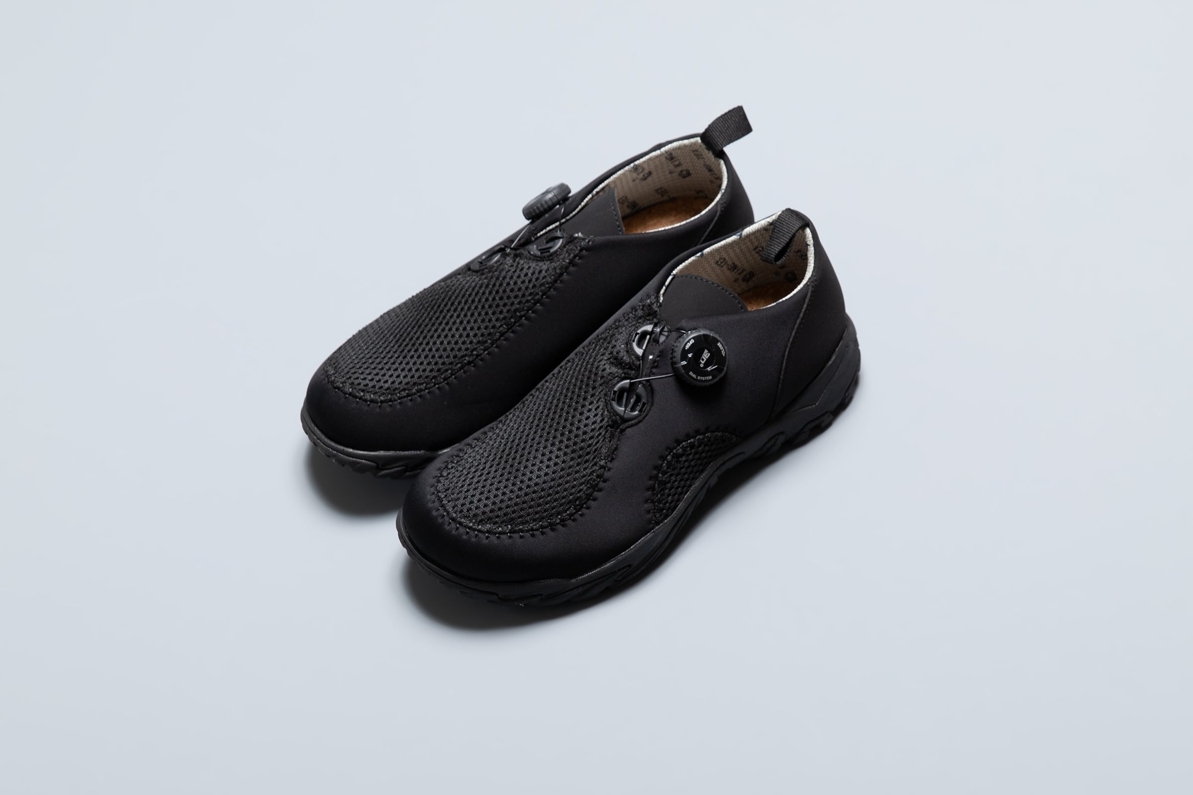 FRESHは”サンダルのようなLITEなシューズ”をコンセプトに制作しました。アッパーはネオプレーンとメッシュ、ソールはvibram®のサンダル用のソールを使用しています。内側に防水透湿性(外からの水の侵入を防ぎ、内側の湿気を外に逃がす)に優れたKING-TEXメンブレンを装備し、生活防水仕様です。(縫製仕様上、完全防水ではございません)軽くて柔らかい、そして雨の日でも足元はフレッシュな状態でいられる、そんなサンダルのような新感覚なシューズです。