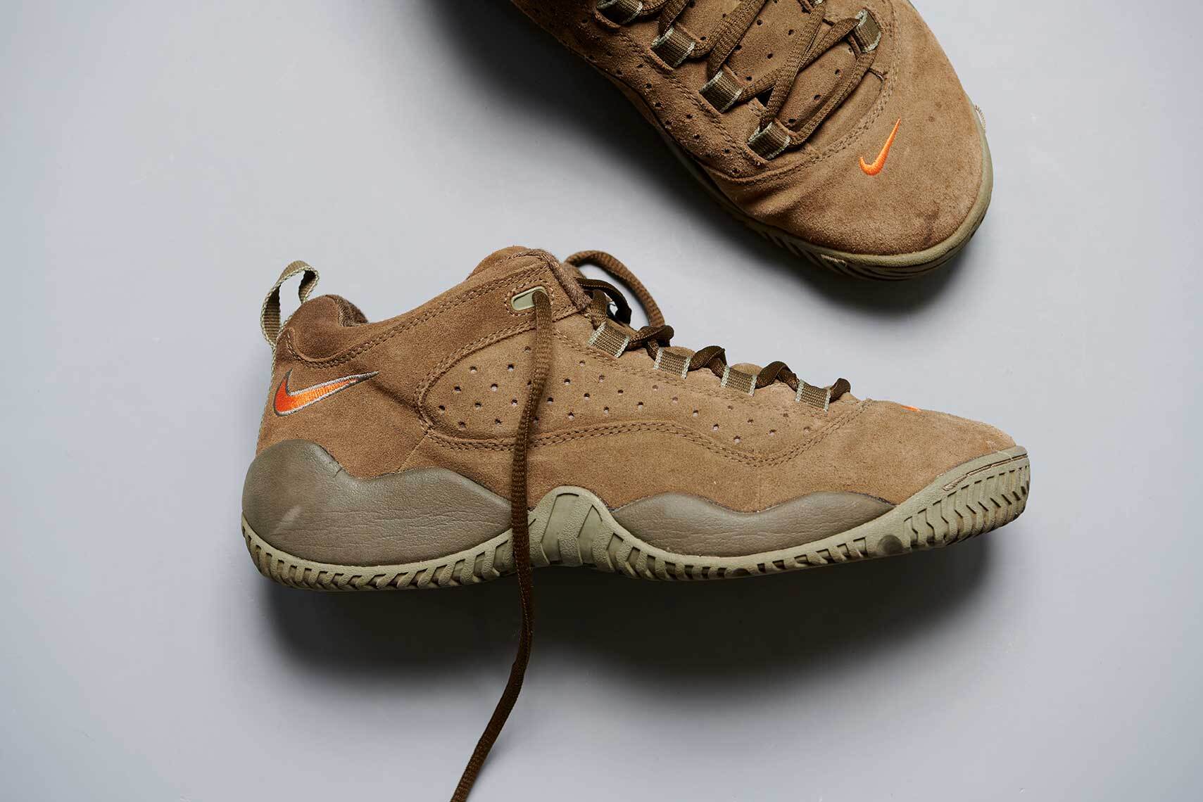The NIKE AIR DARWIN is a basketball shoe that looks like this, but I have seen Dennis Rodman wearing the high cut version. However, by far, I have the impression that the low cut is less baller than the high cut. These are very cool. The base color is a mix of olive and brown, with orange as a subtle color, excellent. I don't think I even need to explain that much. The sole repair has been repaired in 2000. The shoes are very clean for their age, although there are some stains like spots and some signs of use.