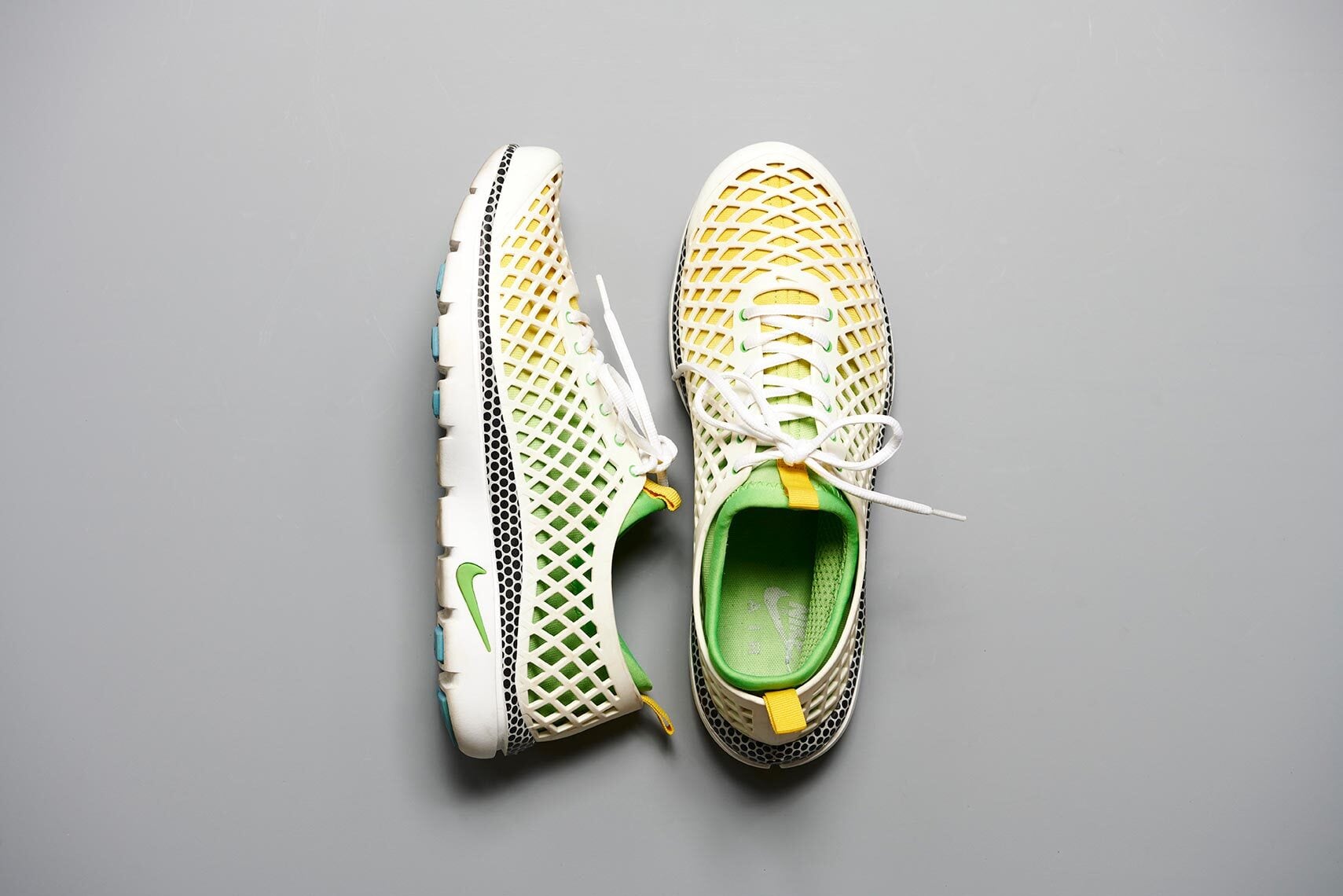 The REJUVEN8 was launched in 2008 as a comfort shoe for athletes, and a model in the national colors was also released during the Beijing Olympics that same year. Later, various models with Lunar sole, mid-cut, and mule models were also released. The shoes are very comfortable and pleasant to wear, and can be worn as sandals without socks. The coloring is a gradation of green and yellow. This pair was made in 2007 and is in good condition for its age.