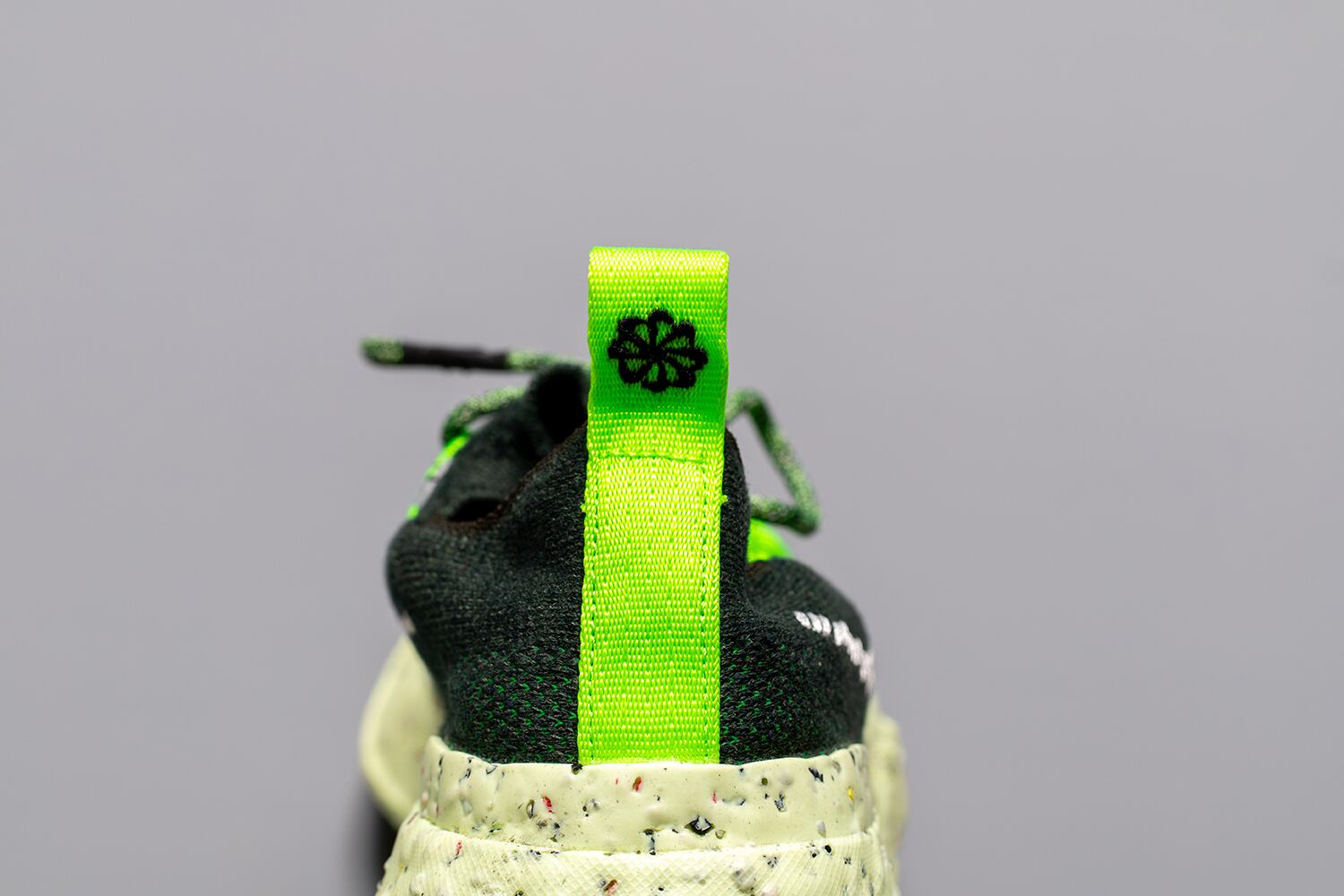 SPACE HIPPIE is an experimental footwear collection that revives discarded scraps, which for NIKE are "space trash," and creates bold designs with an emphasis on recyclability. The knit material that makes up the upper is 100% recycled, made from plastic bottles and T-shirts. The cushioning section is reprocessed from scraps of the company's NIKE VAPORFLY 4%. Carbon dioxide emissions are reduced by about half. The sole, made from crater foam, is mixed with about 15% grind rubber (rubber made from unwanted shoes or discarded materials), reducing carbon emissions while preventing the use of new materials. 01 is THE sneaker type pair. Lightweight and breathable, it is recommended for the season. I think the green color with a little bit of toxicity is a distinctive feature of this pair. Made in 2020. Other than the sole being stained, there is no noticeable damage or dirt.