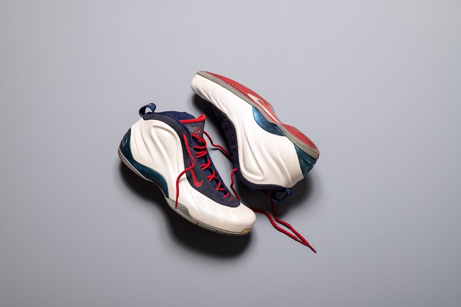 This is a player edition model of former NBA player Yi Jianlian, the successor to the AIR FOAMPOSITE ONE, a basketball shoe worn by several NBA players during the 2008~2009 season. The coloring is that of the New Jersey Nets, where Yi Jianlian was a member at the time. This is a fairly rare pair, made in 2008. The shoes are in relatively good condition, although there is some wear and deterioration of the leather.