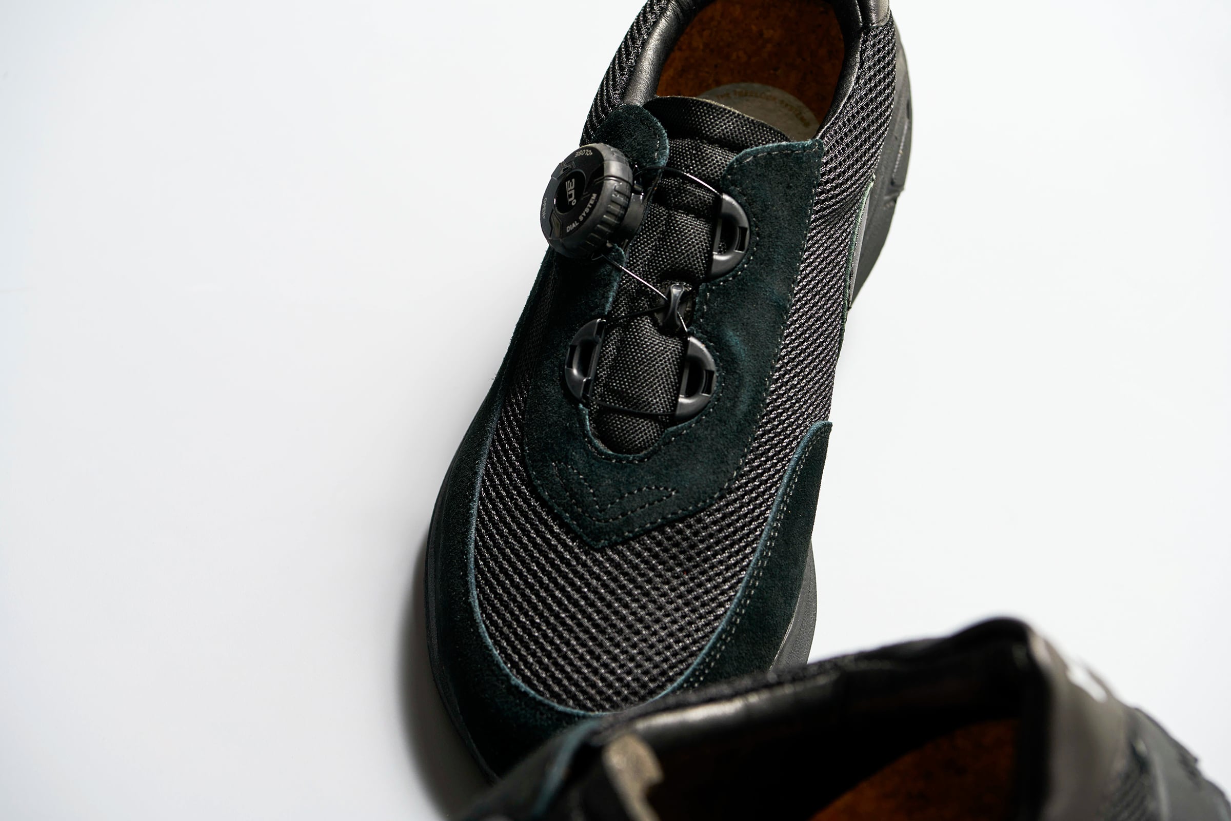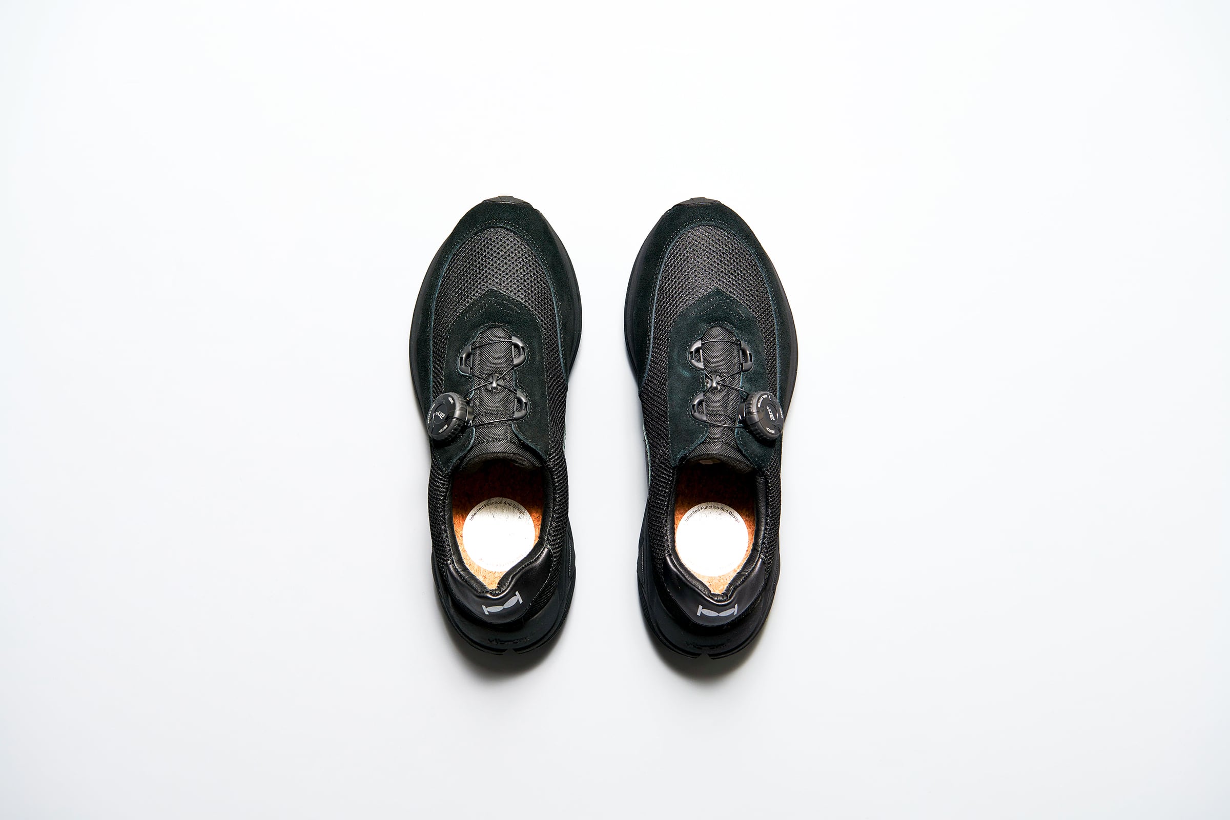 ナイロンメッシュにスエード、vibram トレイルラン用のソールにフリーロック。これはレトロランニングスニーカー系の進化版なのか否か。THE ANSWER IS YOURS.答えはあなた次第。